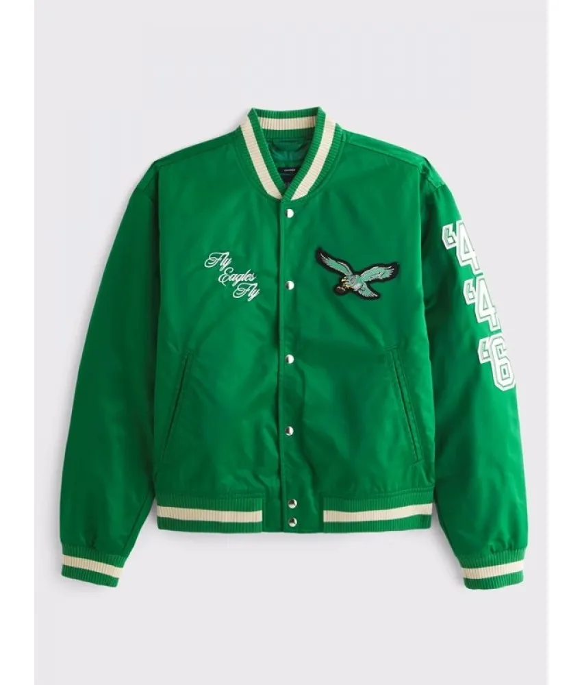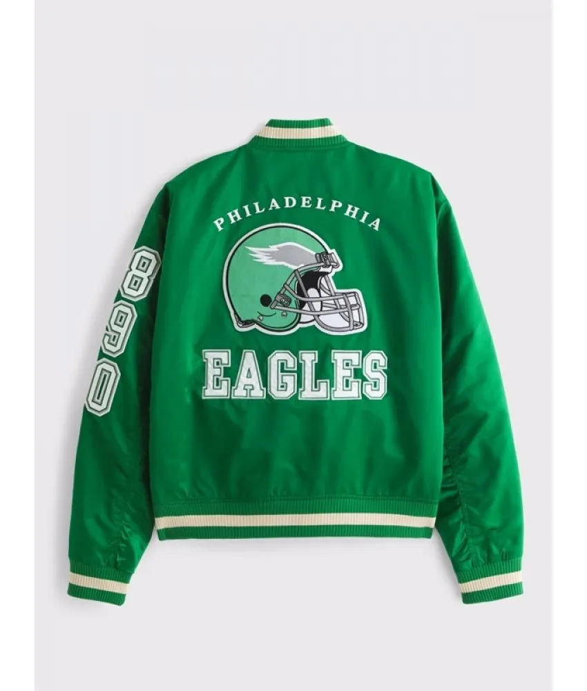 Abercrombie Chiefs Green Varsity Satin Bomber Jacket