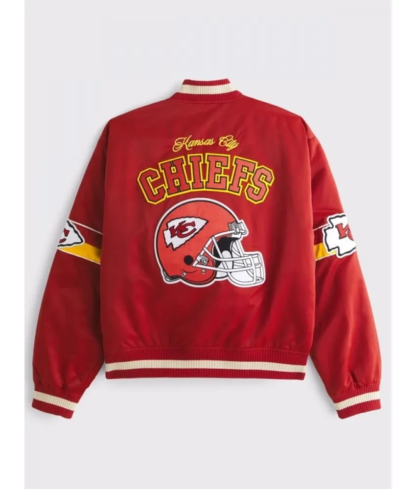 Abercrombie Chiefs Red Varsity Satin Bomber Jacket
