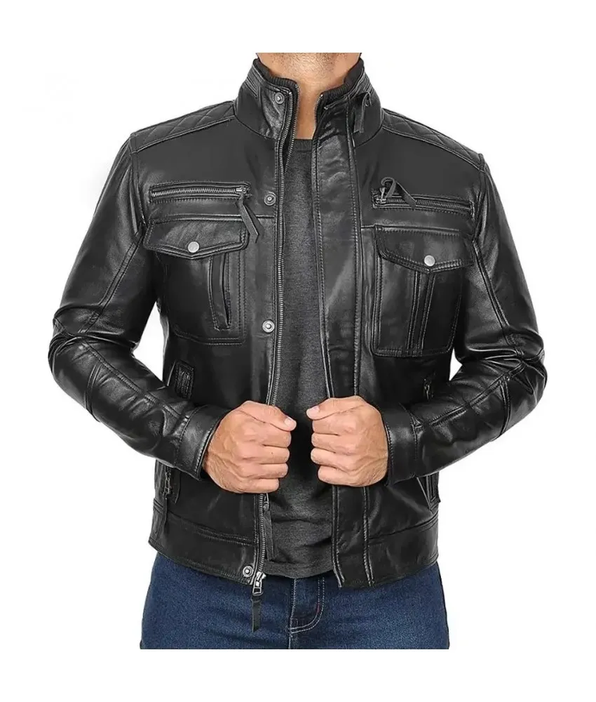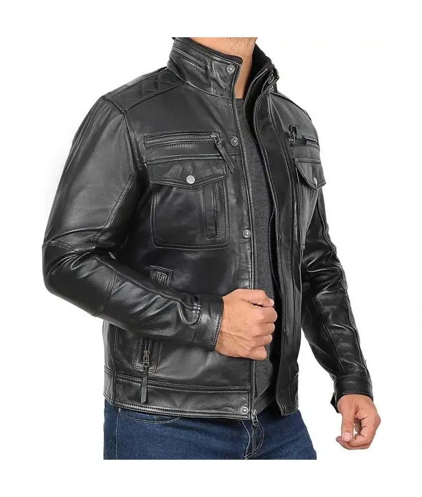 Pockets: Two flap chest pockets, four zipper front pockets. the one inner pocket