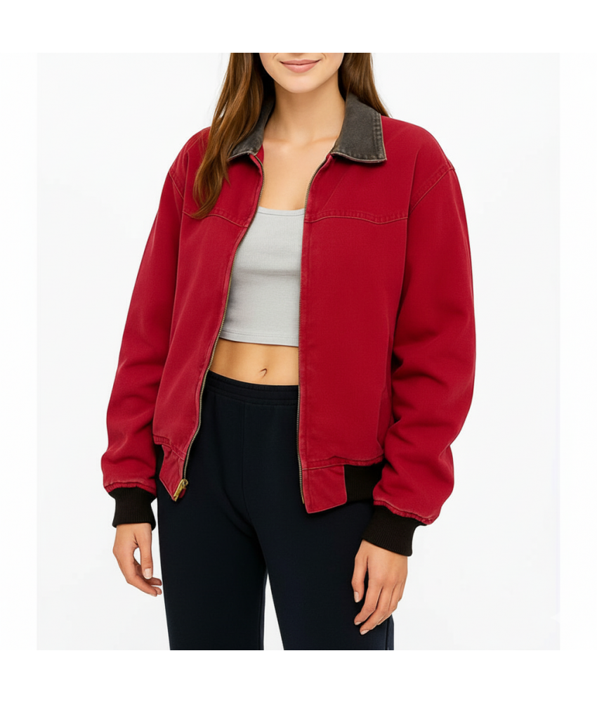 American Sweatshop Daisy Moriarty Bomber Cotton Red Jacket