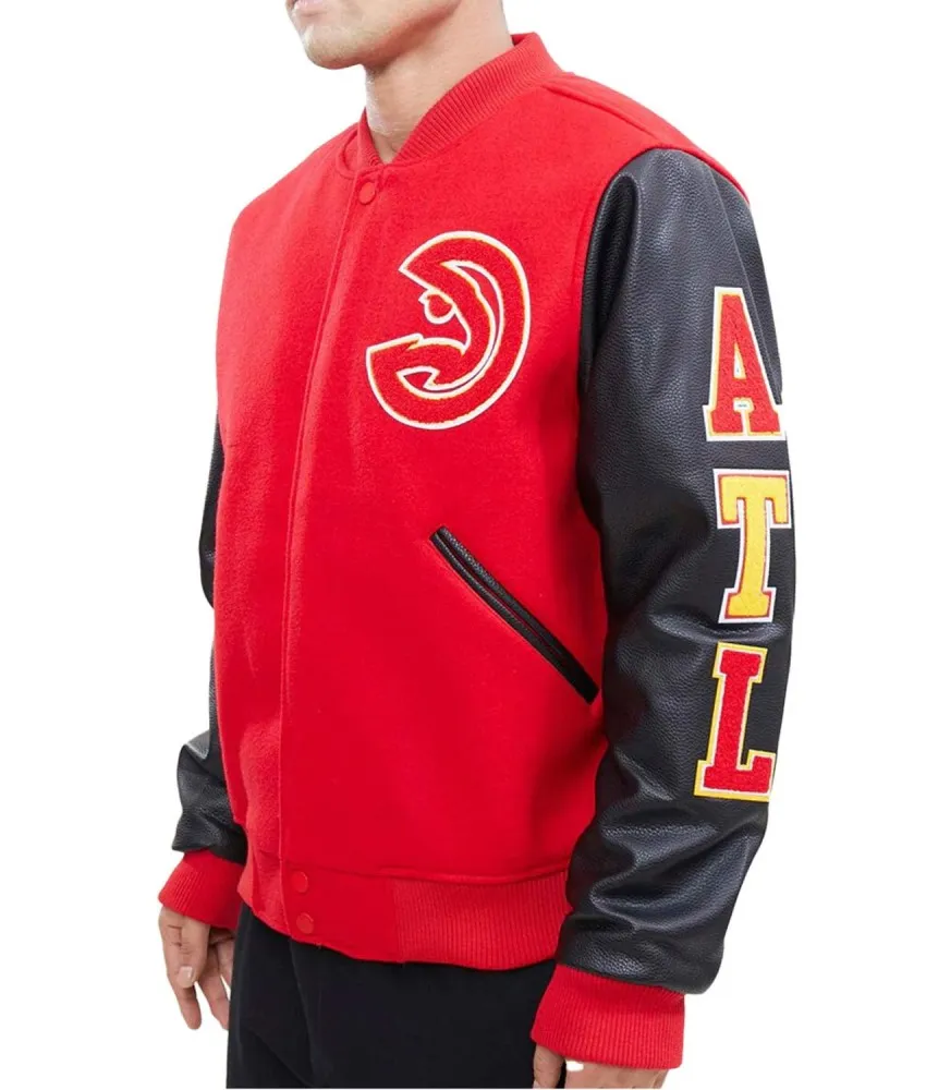 Tags: christmas gift christmas jacket christmas outfit satin jacket cotton jacket varsity jacket winters jacket tv series jacket mens jacket wool jacket bomber jacket baseball jacket Atlanta Hawks Red and Black Varsity Jacket