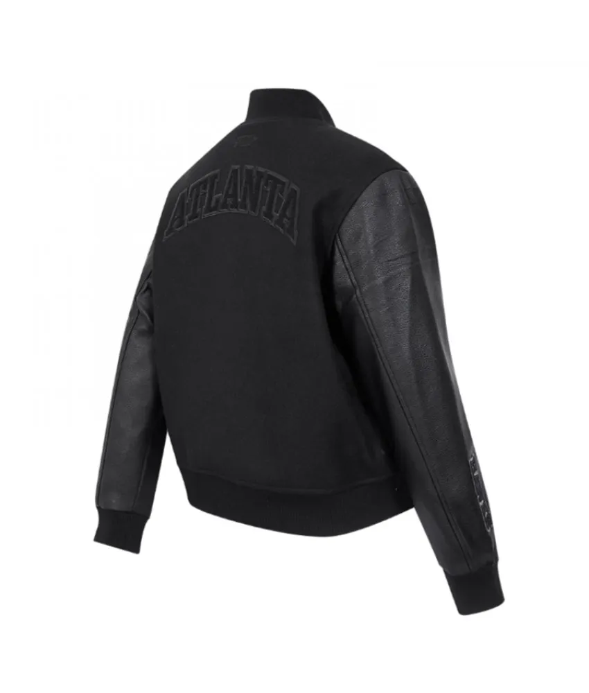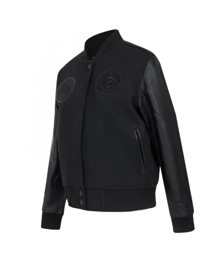 Atlanta Hawks Triple Black Varsity Wool and Leather Jacket