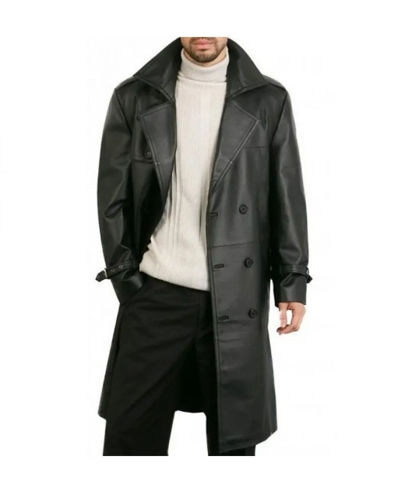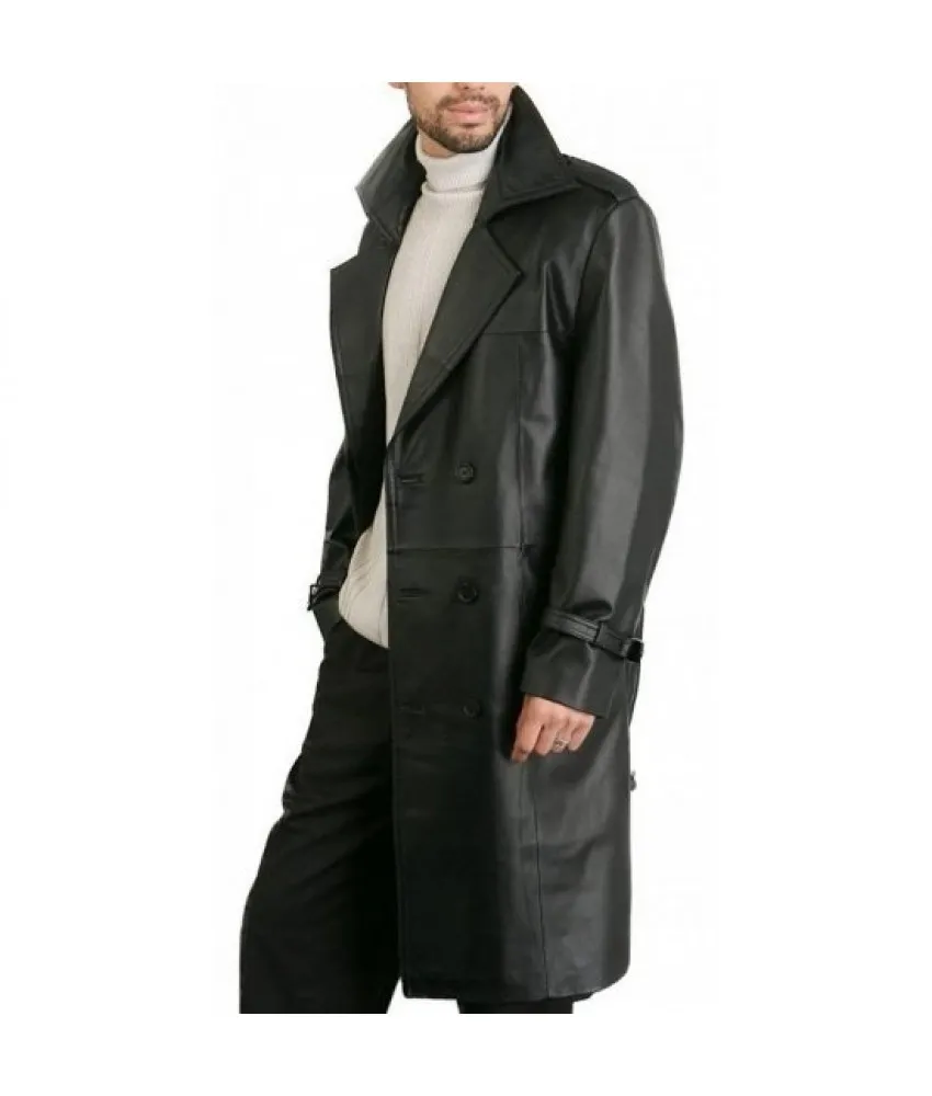 Augusta Guys Black Double Breasted Leather Overcoat