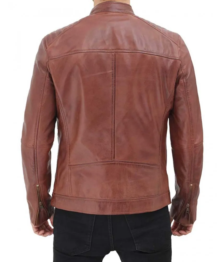 Benjamin Mens Brown Leather Cafe Racer Jacket