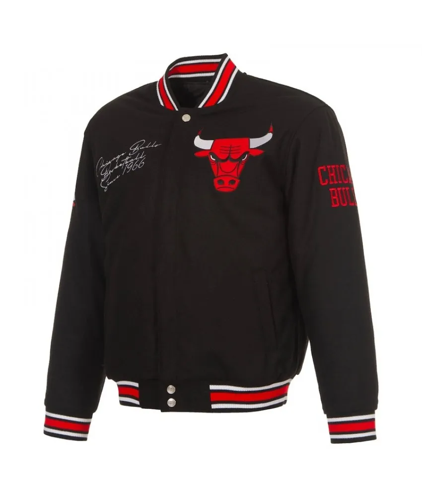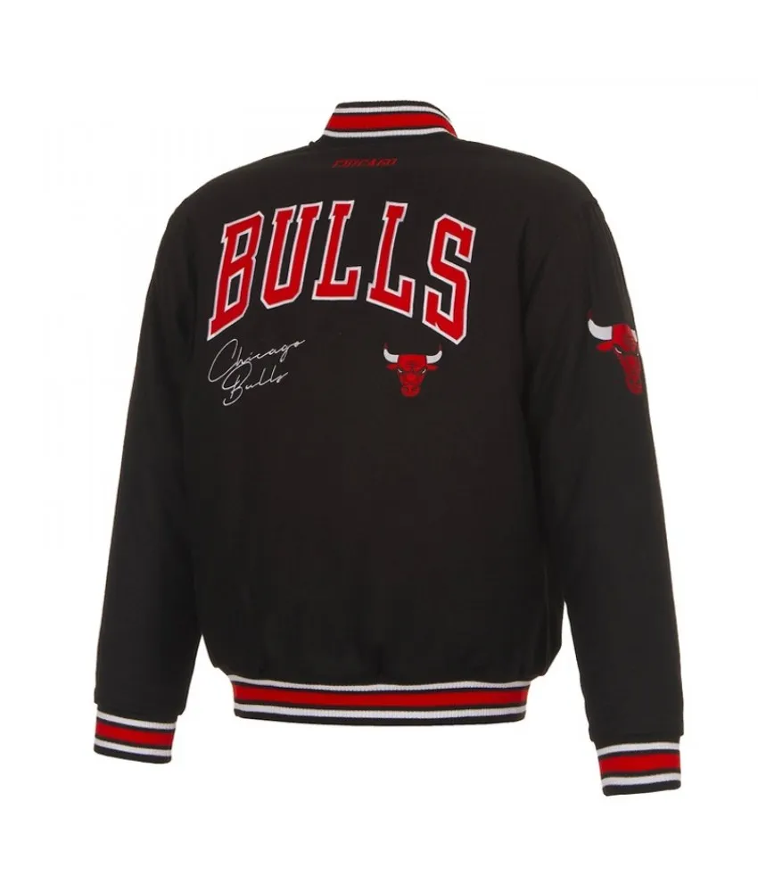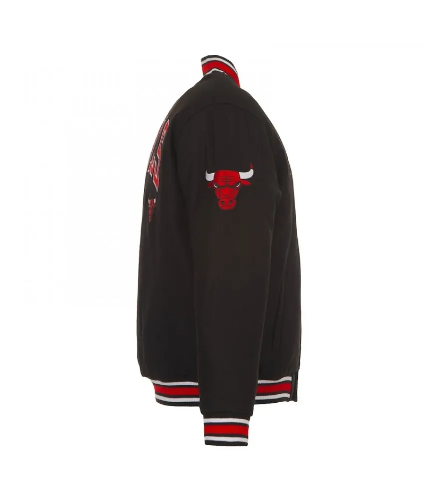 Black Full-Snap Chicago Bulls Wool Varsity Jacket