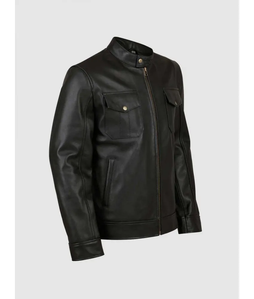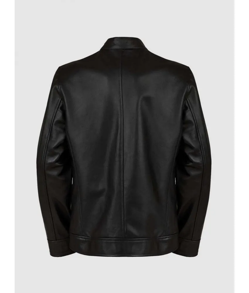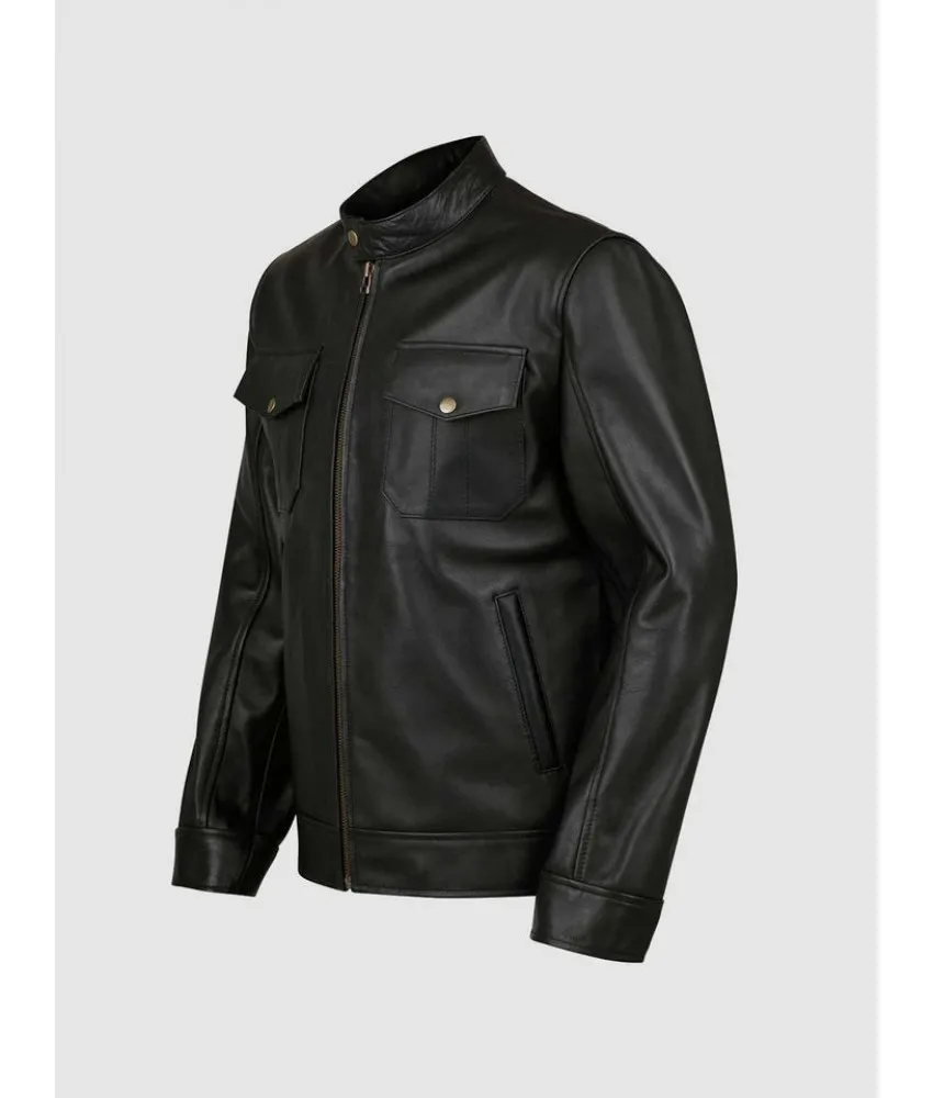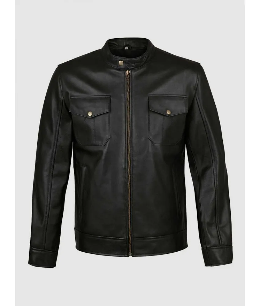 Black Leather Jacket with 4 Pockets