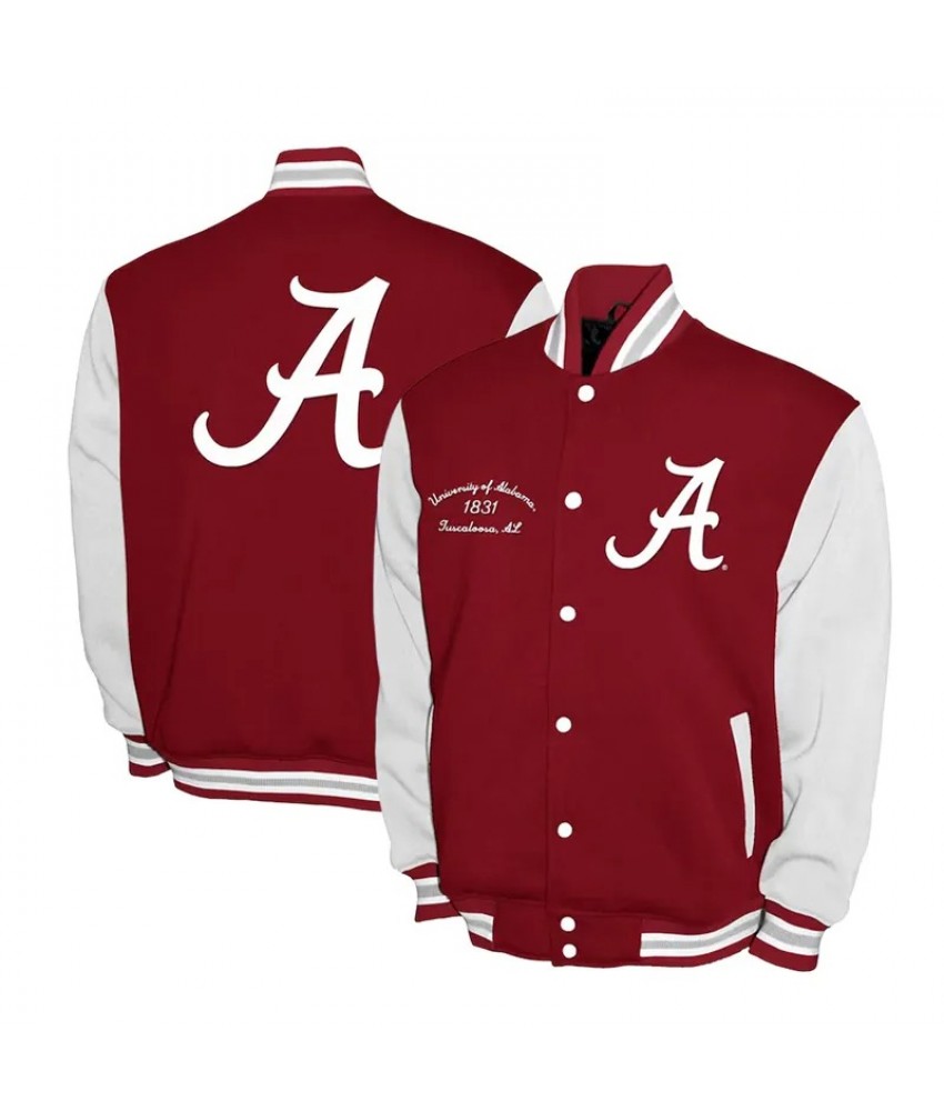 Alabama Crimson Tide Fleece Burgundy and White Varsity Jacket