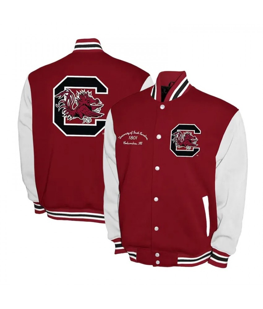 South Carolina Gamecocks Fleece Burgundy and White Varsity Jacket