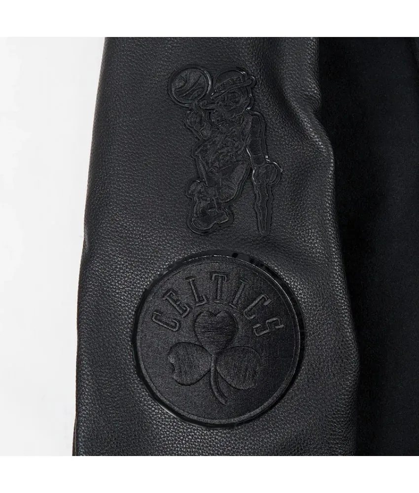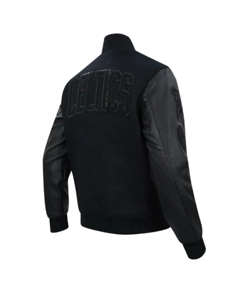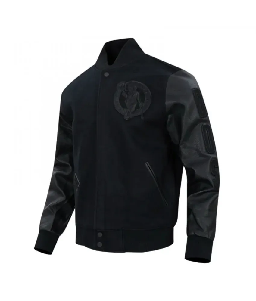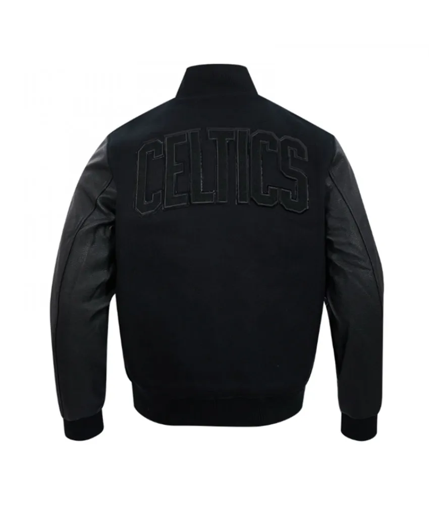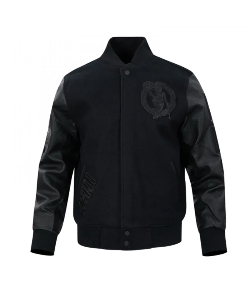 Boston Celtics Triple Black Varsity Wool and Leather Jacket
