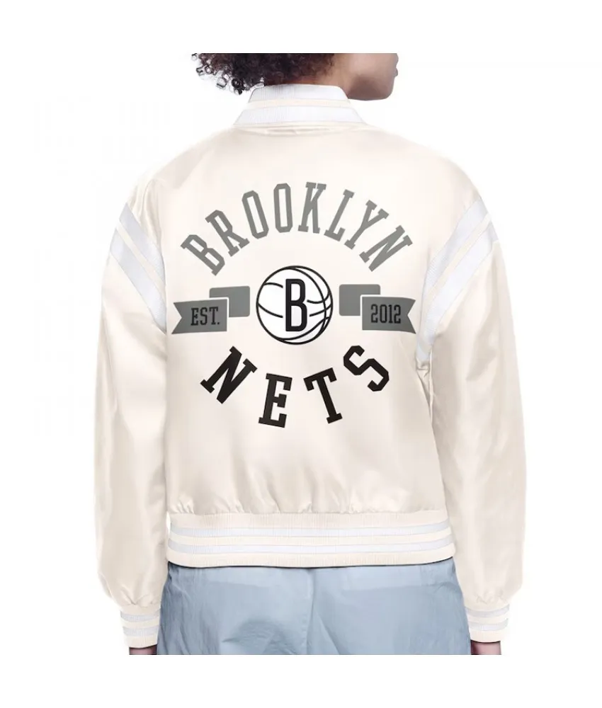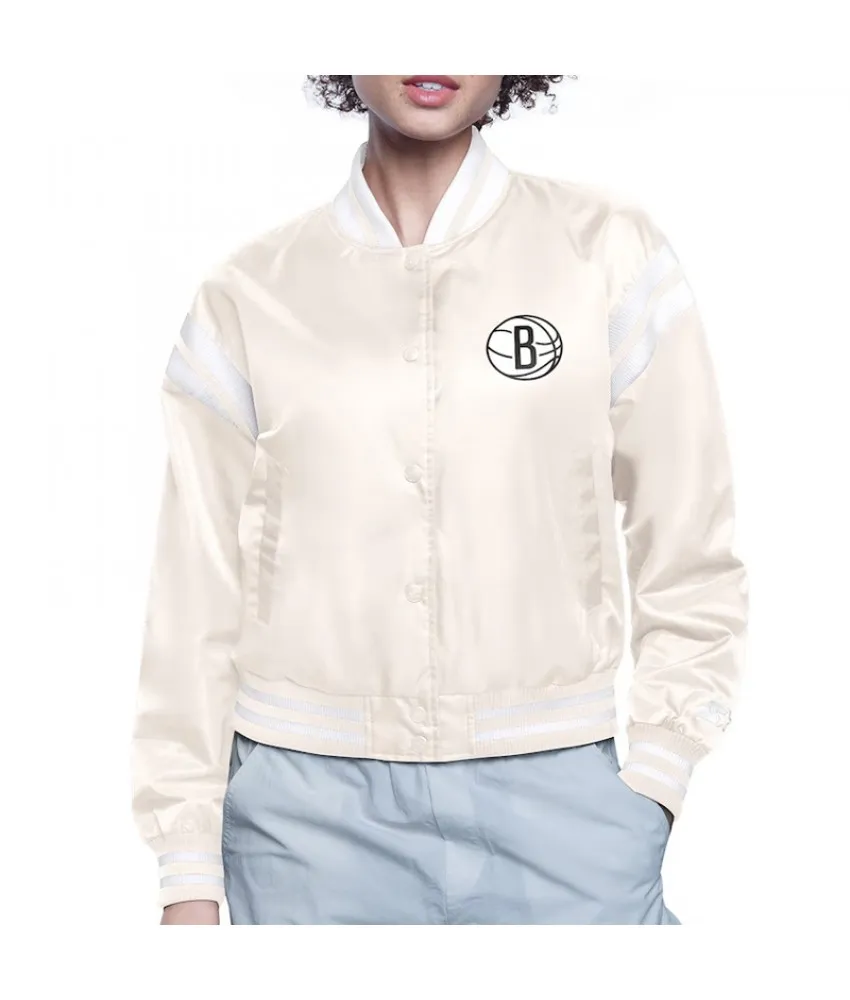 Brooklyn Nets Printed Logo Varsity Satin Jacket