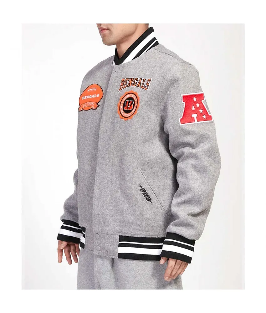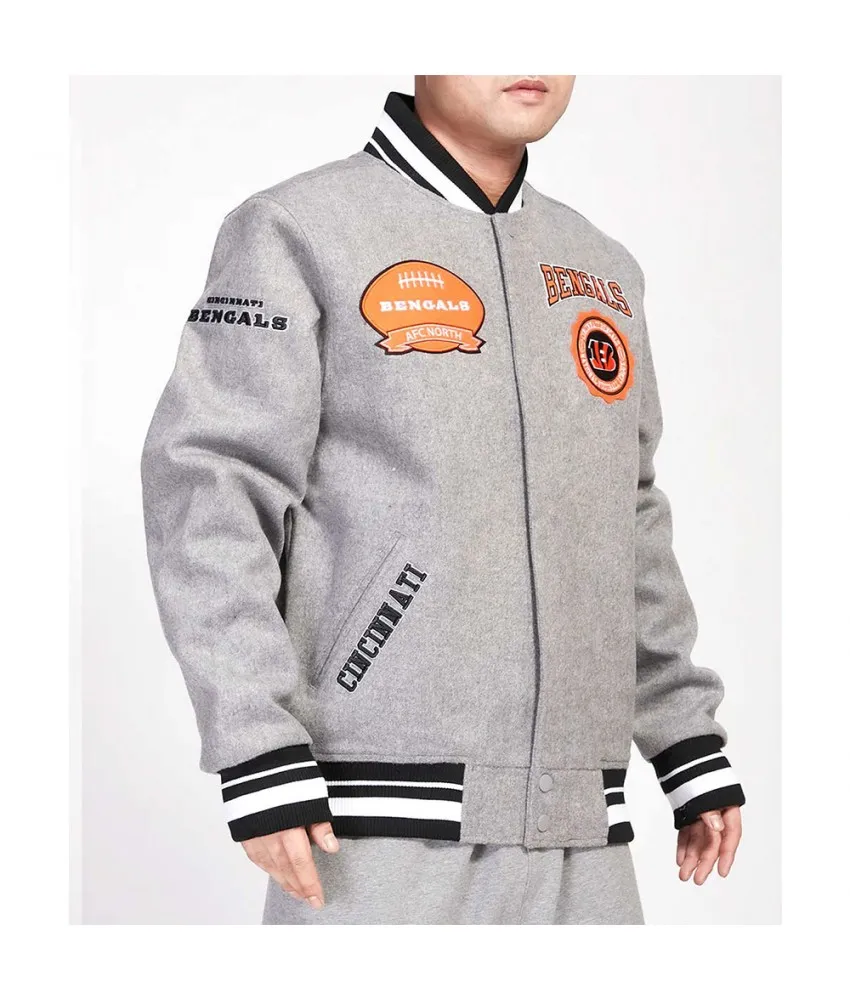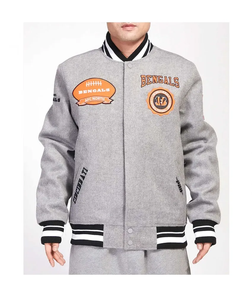 Cincinnati Bengals Crest Emblem Gray Varsity Wool Jacket