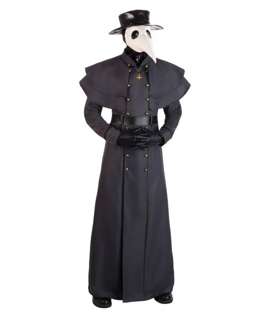 Classic Plague Doctor Halloween Black Wool Coat