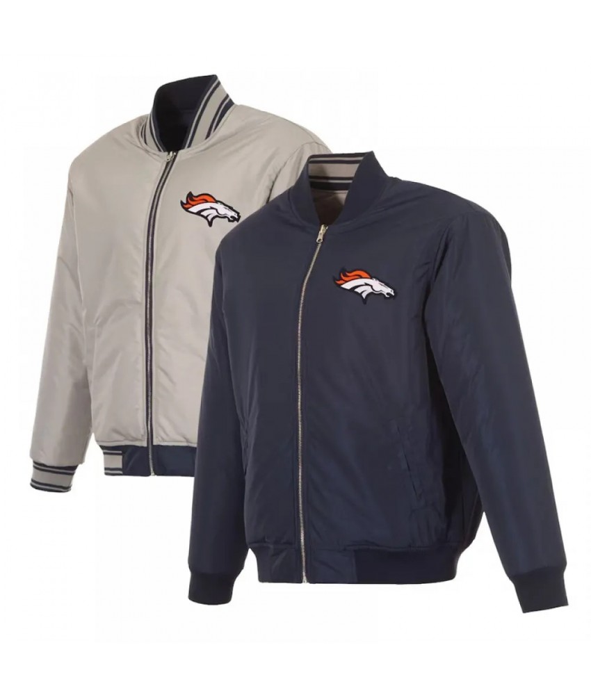 Denver Broncos Navy/Gray Full-Zip Reversible Flight Jacket
