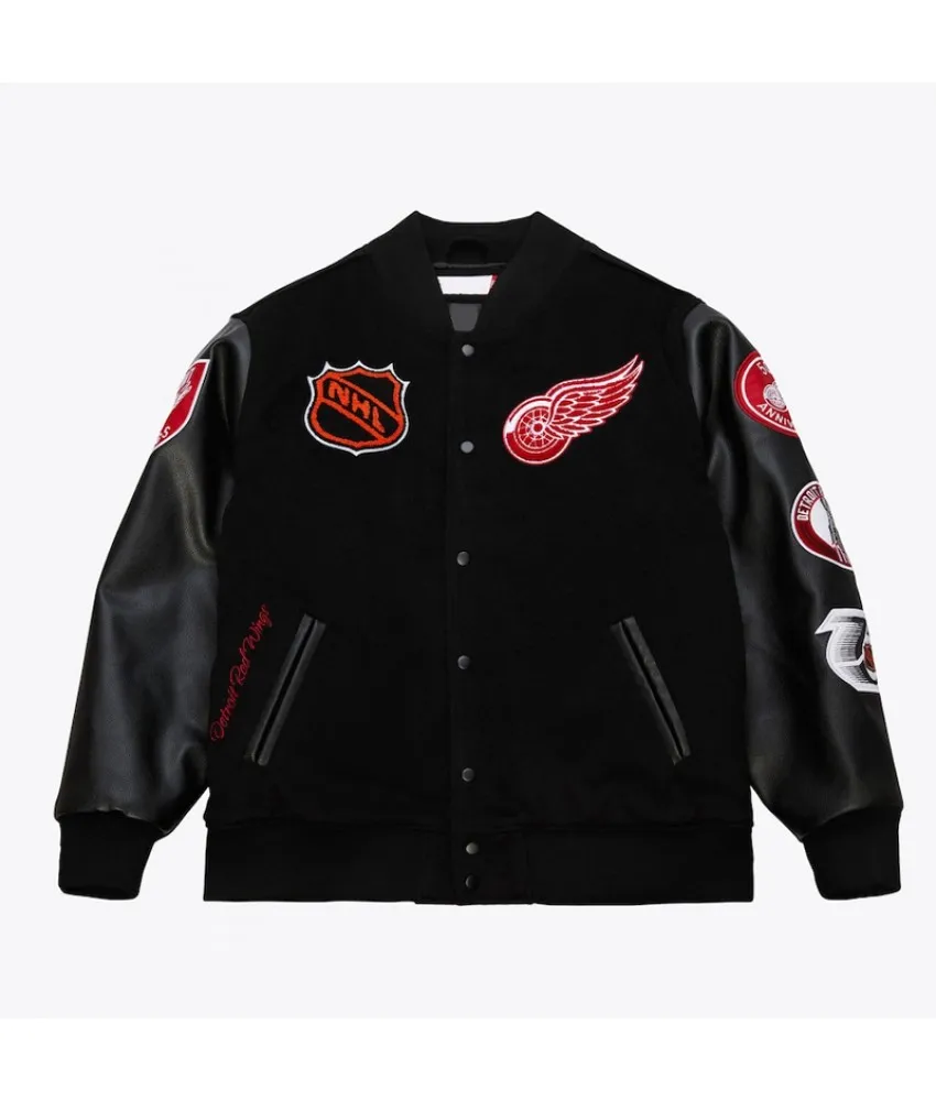 Detroit Red Wings Black Out Team Logo Varsity Jacket