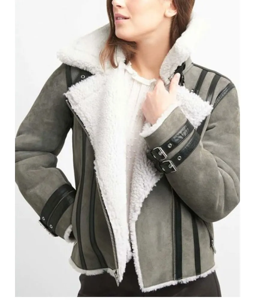 $249.99 -10%Tags: women suede leather jacket winters women leather jacket grey women leather jacket Elena Grey Suede Leather Shearling Jacket