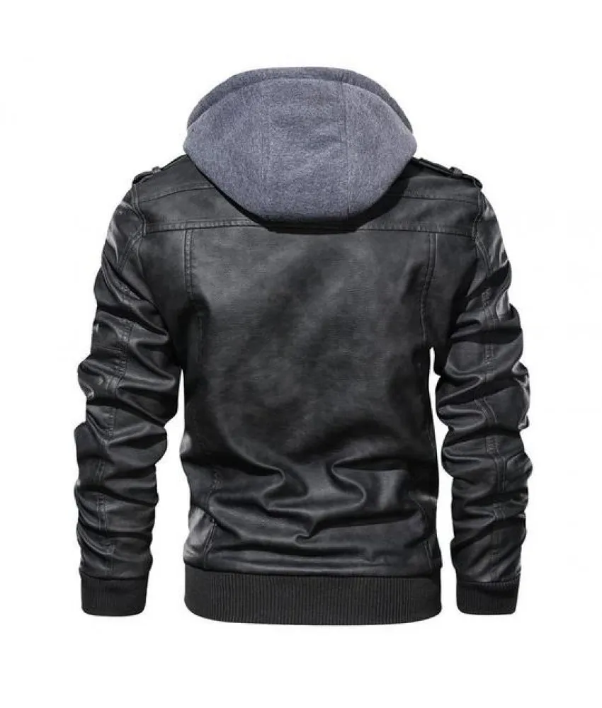 Ferndale Black Leather Jacket with Hood Mens