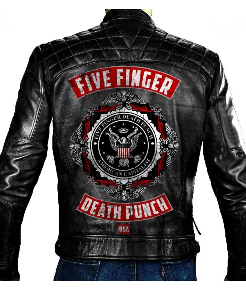 Five Finger Death Punch Biker Black Leather Jacket