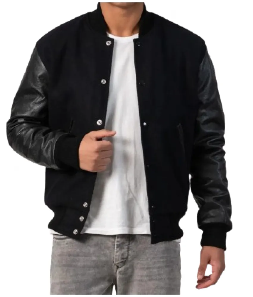 Genuine Leather & Black Wool Varsity Letterman Jacket