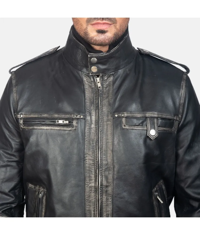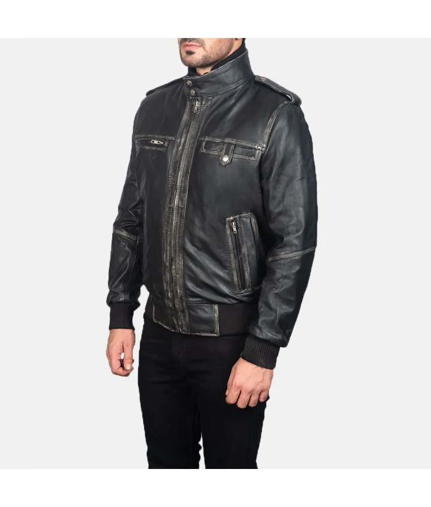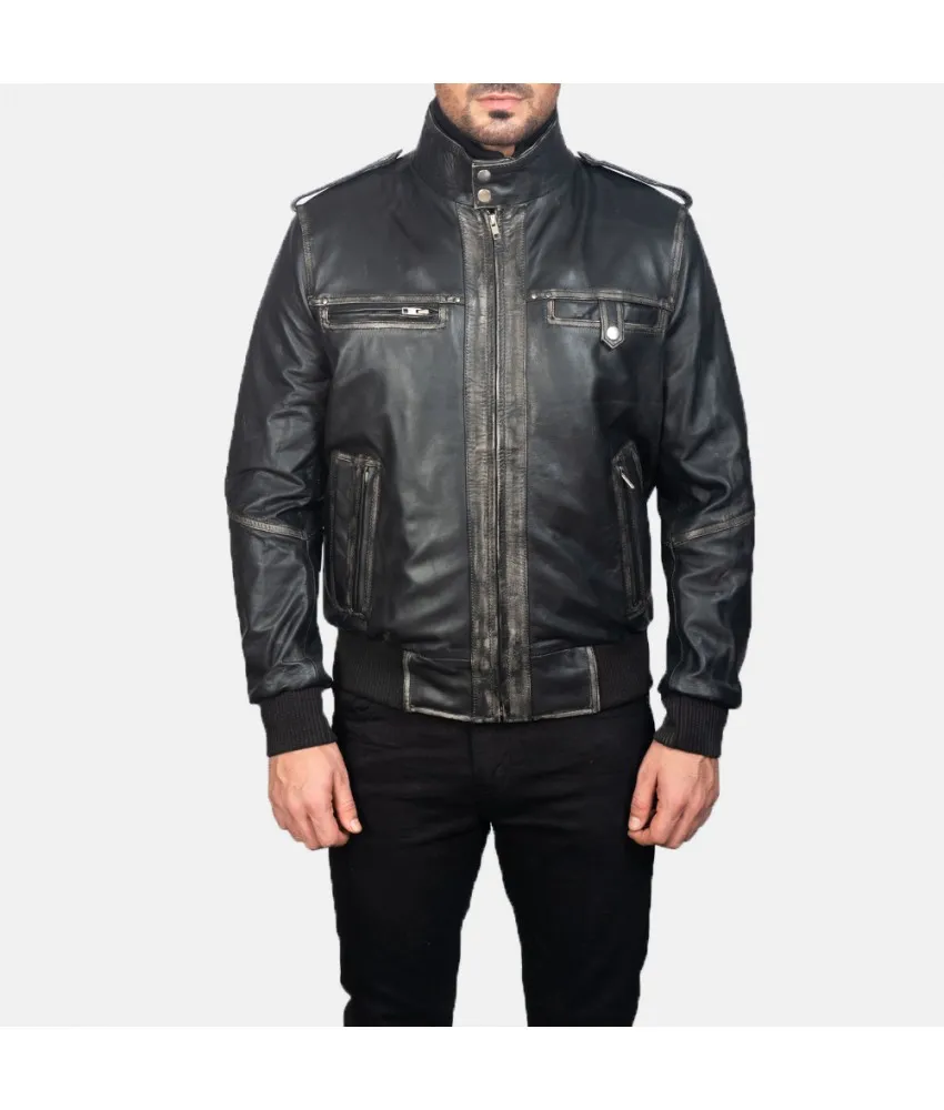 Glen Street Black Leather Bomber Jacket