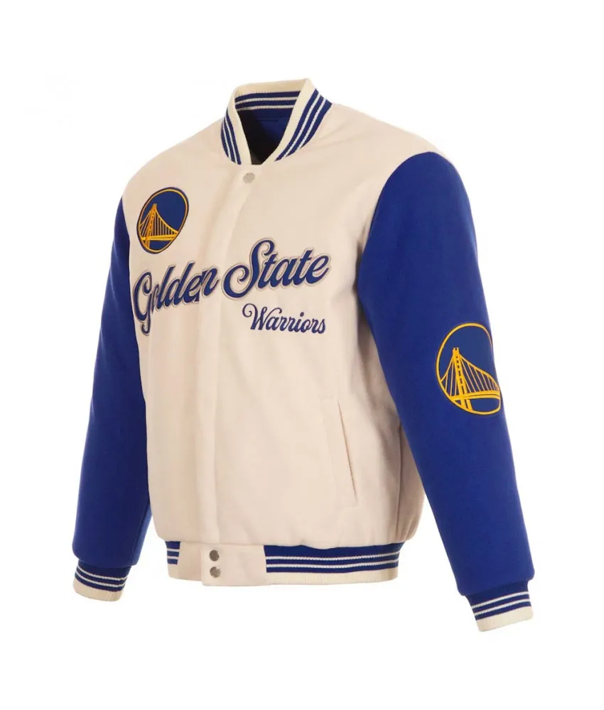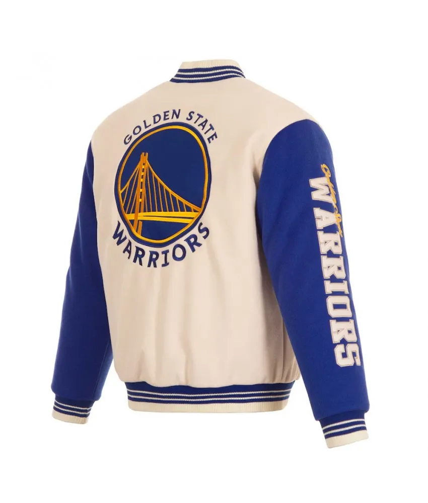 Golden State Warriors Cream and Blue Varsity Jacket