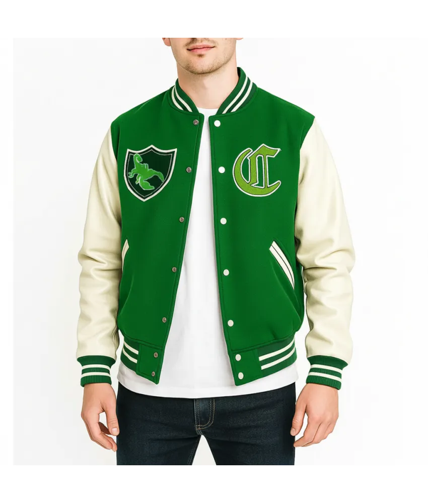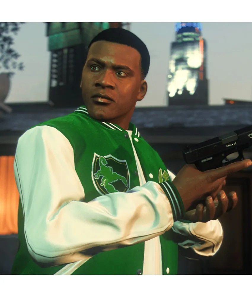 GTA 5 Franklin Adamim Green and White Varsity Jacket