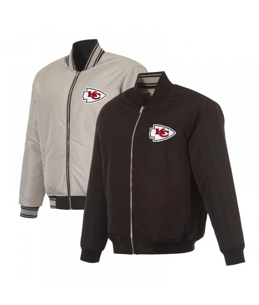 Kansas City Chiefs Black/Gray Full-Zip Reversible Flight Jacket