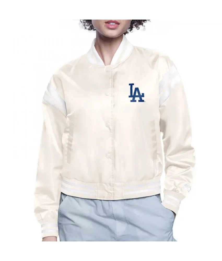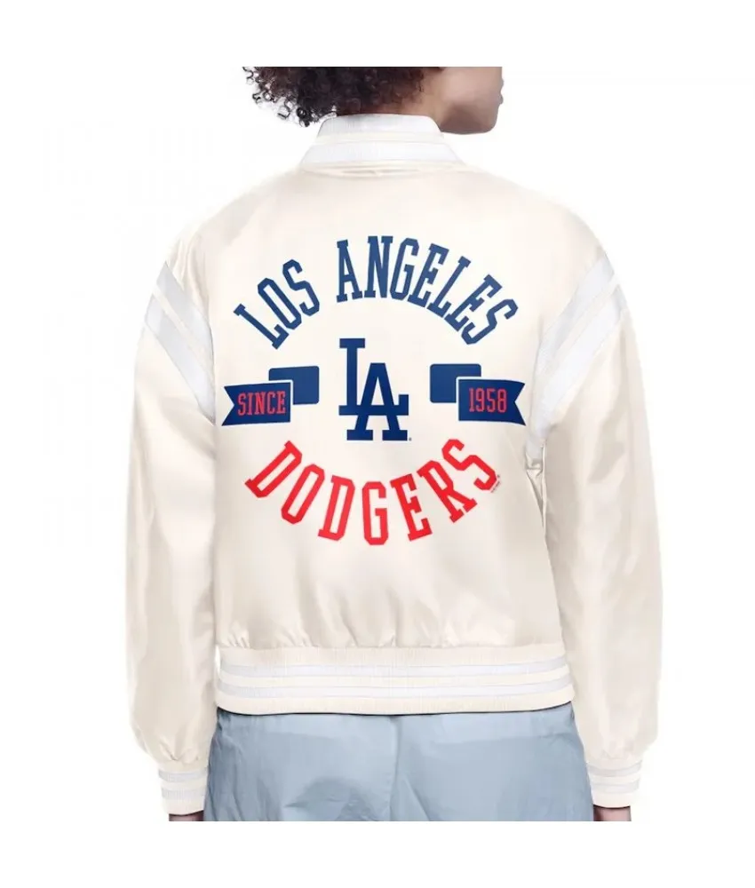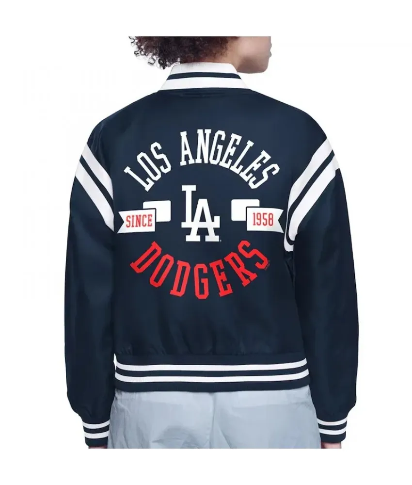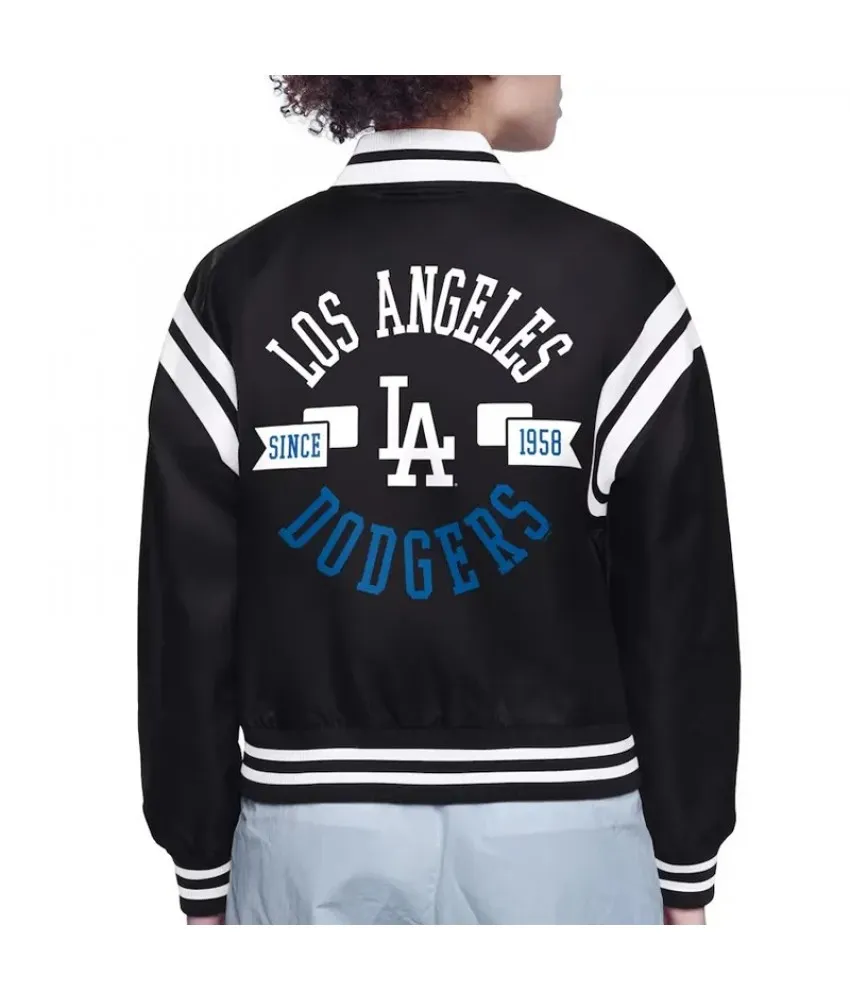 LA Dodgers Printed Logo Black Varsity Satin Jacket