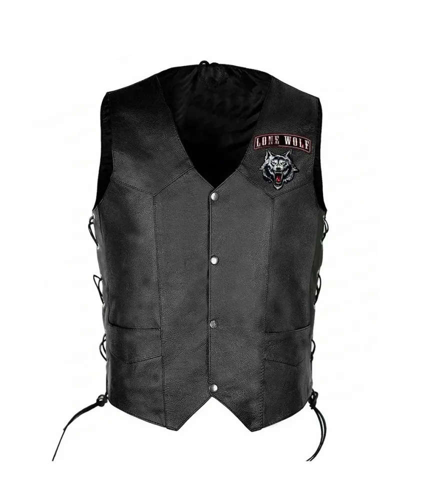 Tags: Lone Wolf Biker Leather Vest Men Bandidos Leather Black Vest mens vest leather vest bikers vest black leather vest movies vest gaming vest celebrity vest