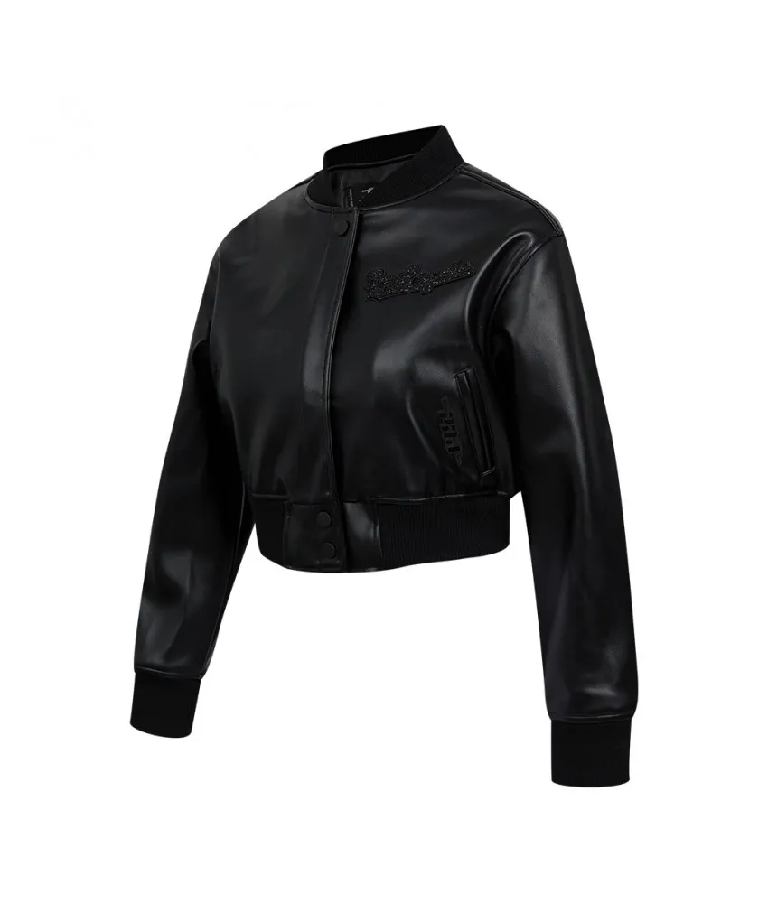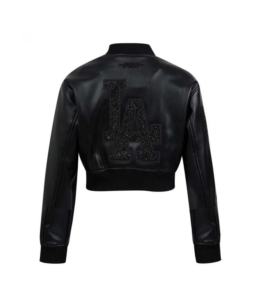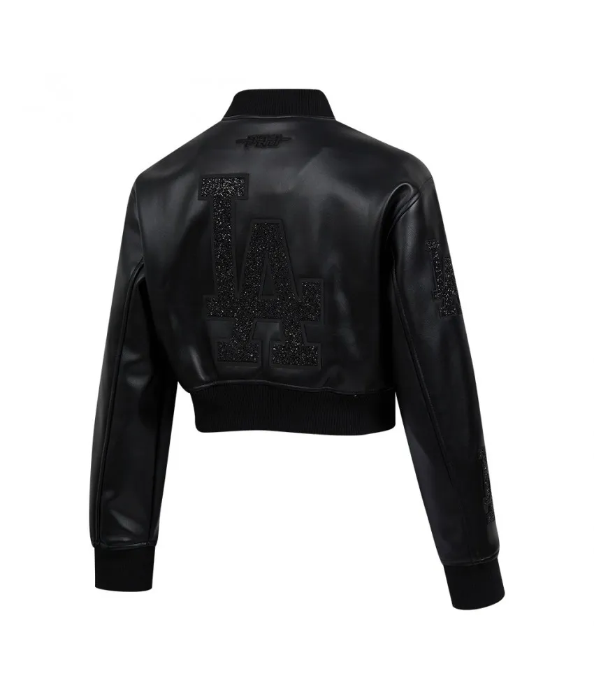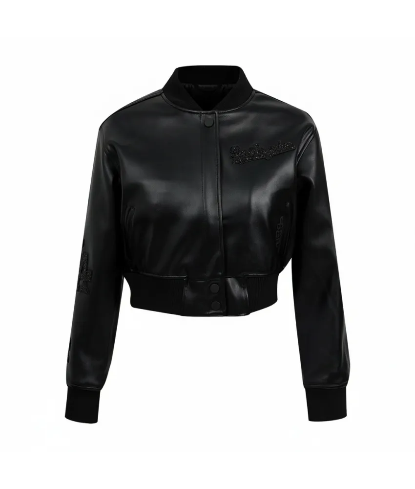 Los Angeles Dodgers Washed Crystalline Women's Cropped Leather Jacket