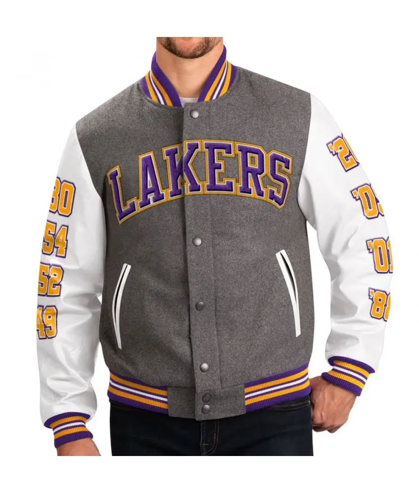 Logo: Los Angeles Lakers logo on the front, sleeve, and back