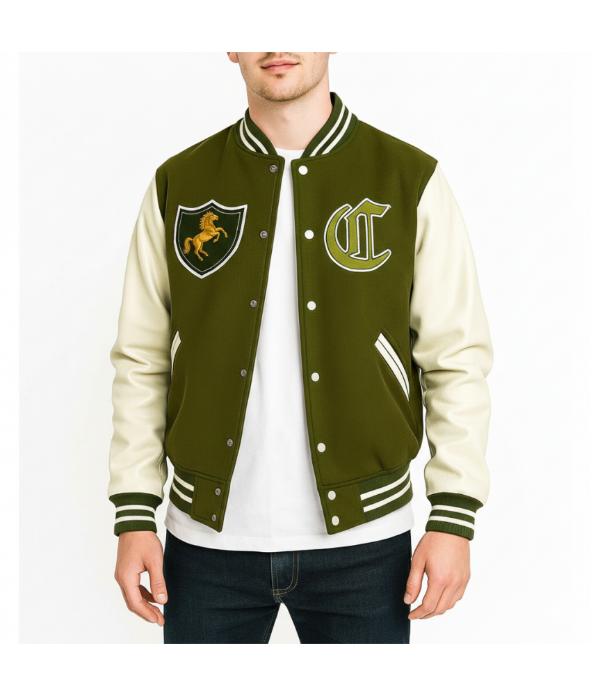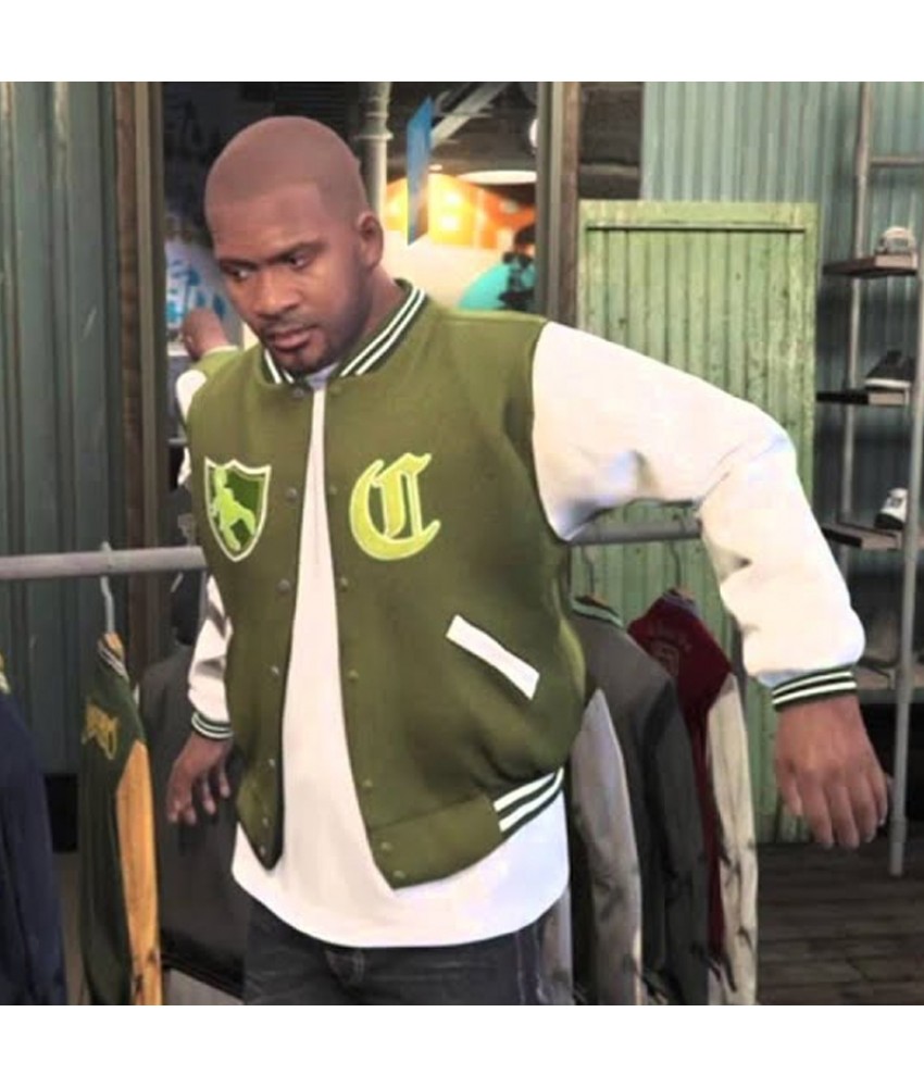LS Pounders GTA 5 Olive Green and White Varsity Jacket