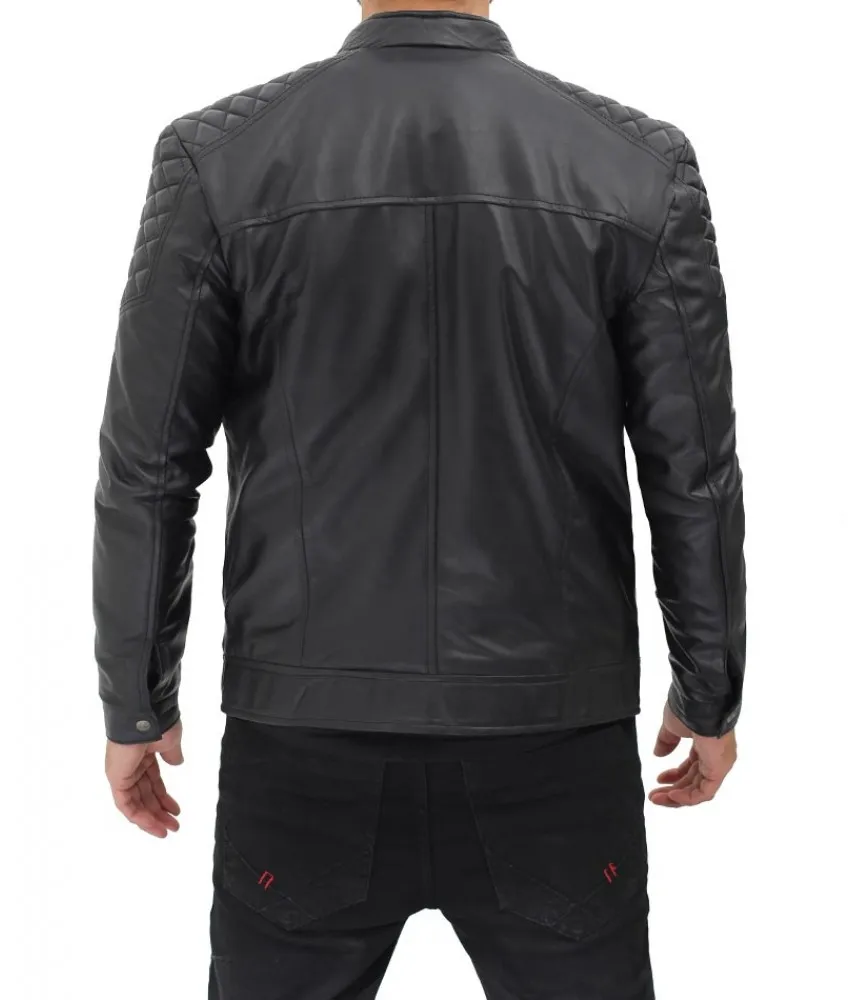 Massa Black Padded Shoulder Leather Jacket Mens