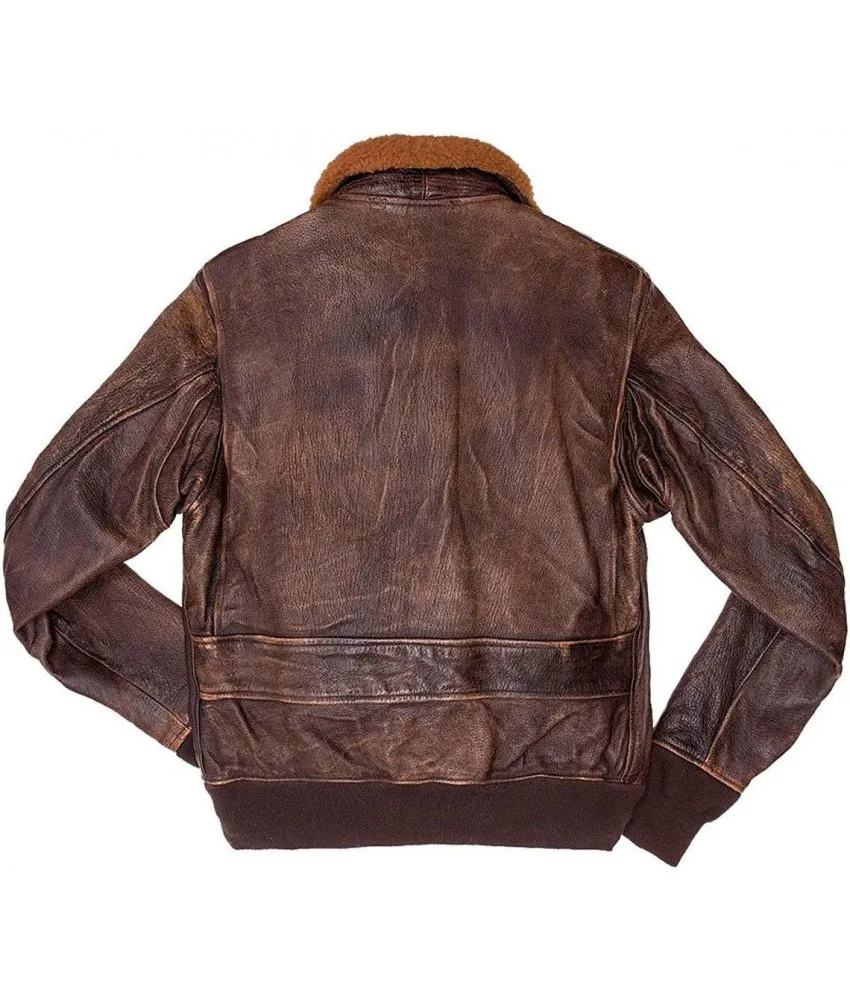 Men's Air Force G2 USAF Brown Pilot Aviator Fur Colar Flight Bomber Jacket