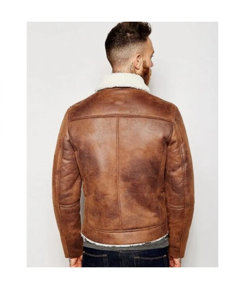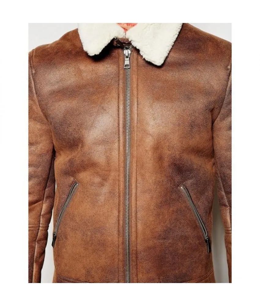 Men's Aviator Brown Leather Faux Shearling Jacket