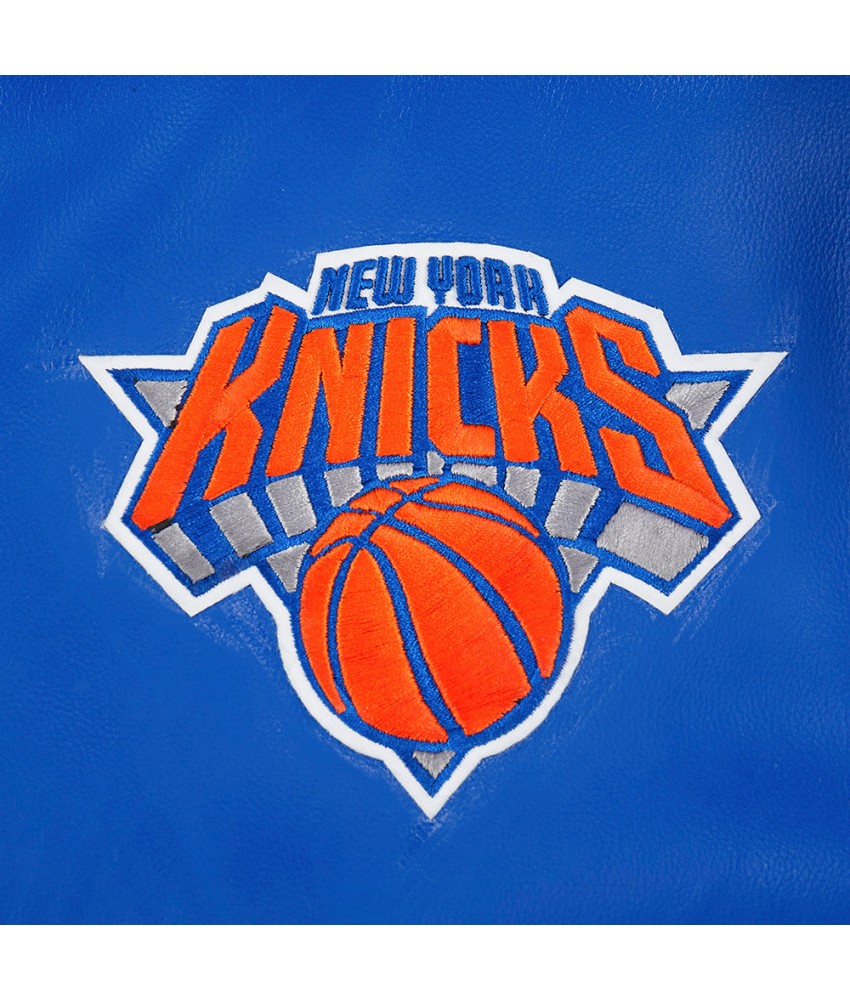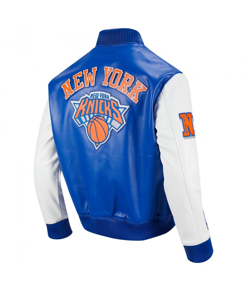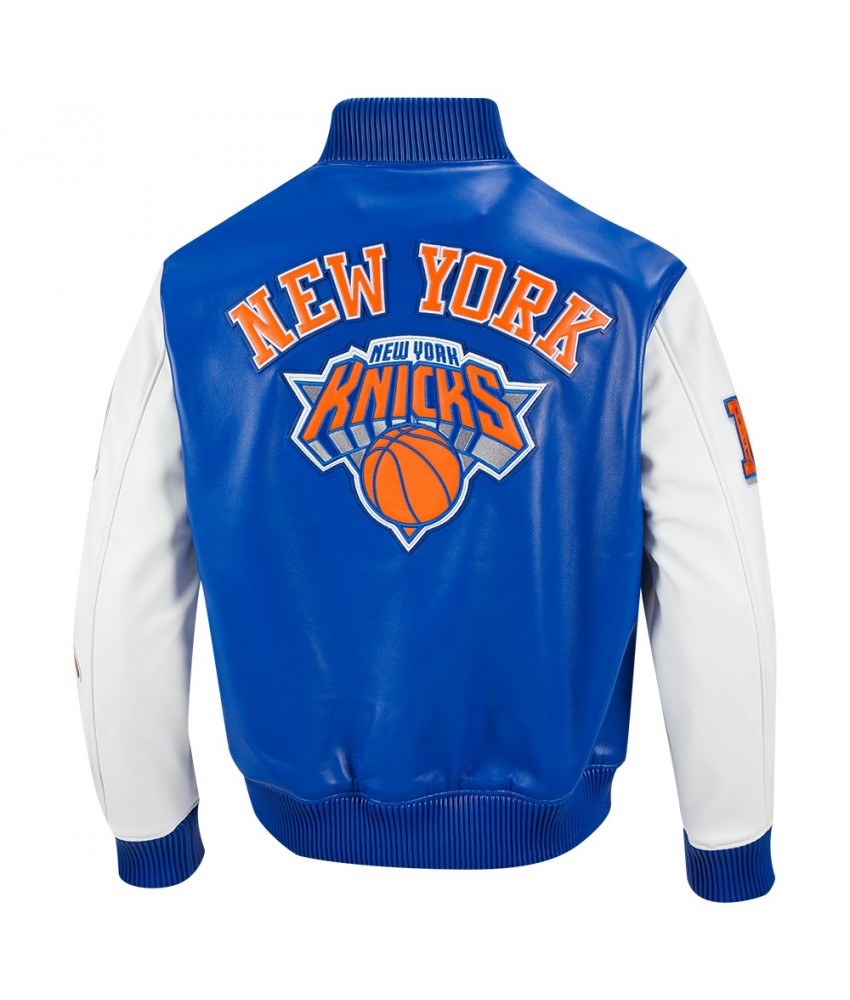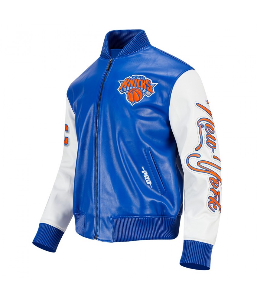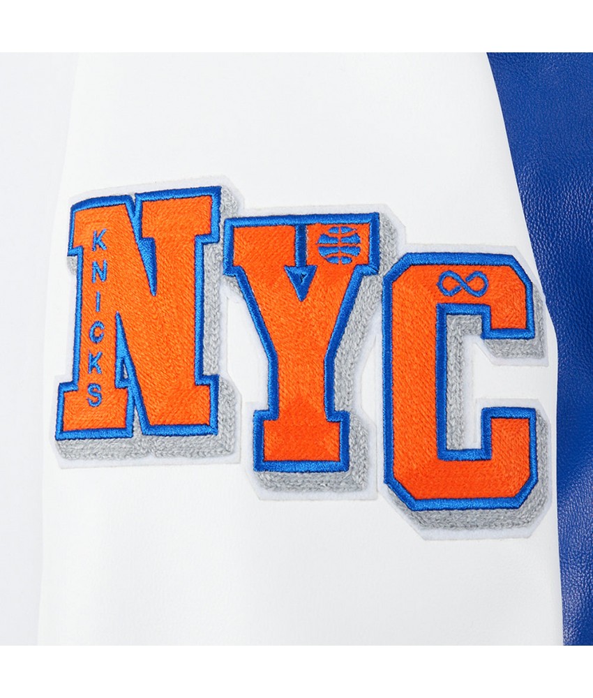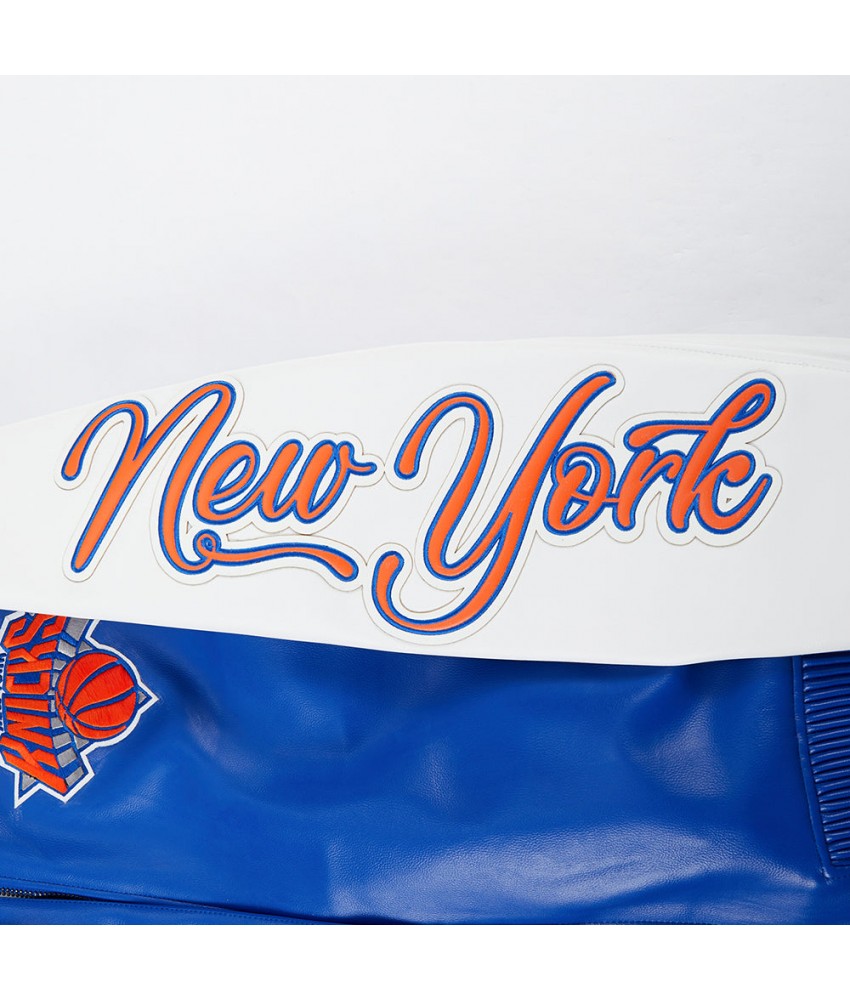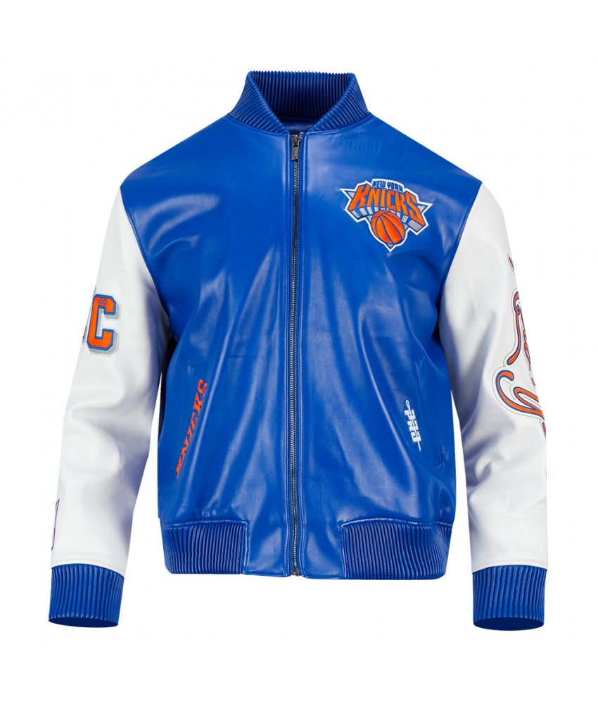 Men's New York Knicks "City Signature" Royal Blue & White Leather Varsity Jacket