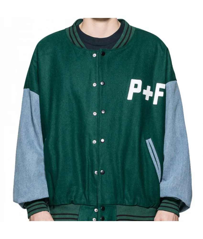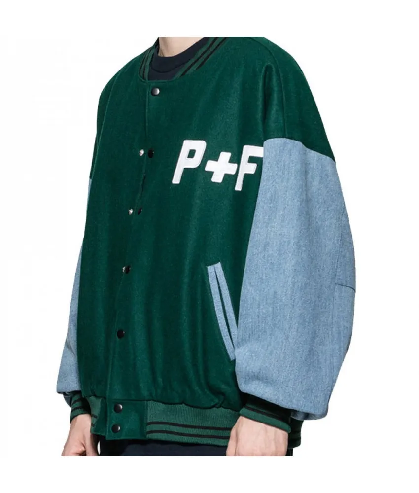 Men's Places Plus Faces Varsity Blue and Green Jacket