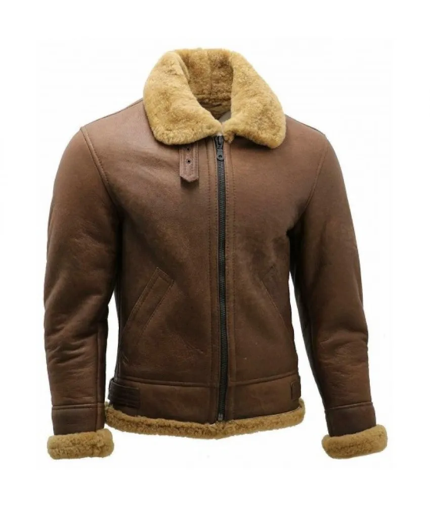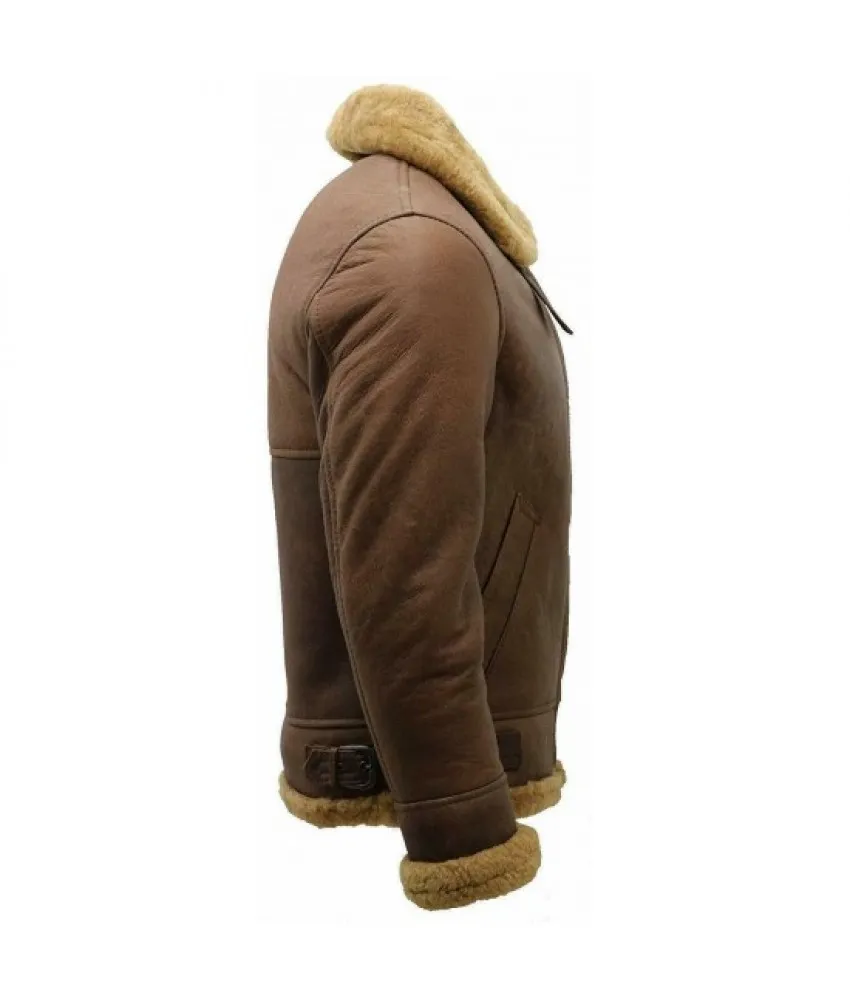 Men B3 Bomber Sheepskin Aviator Leather Jacket