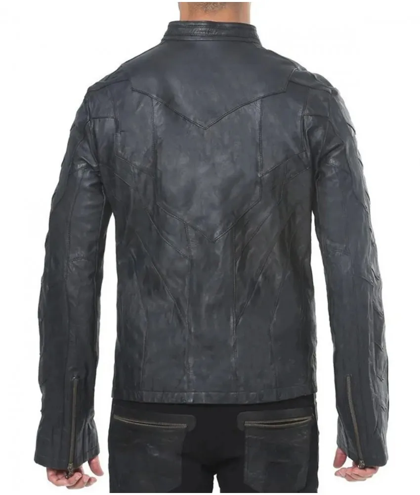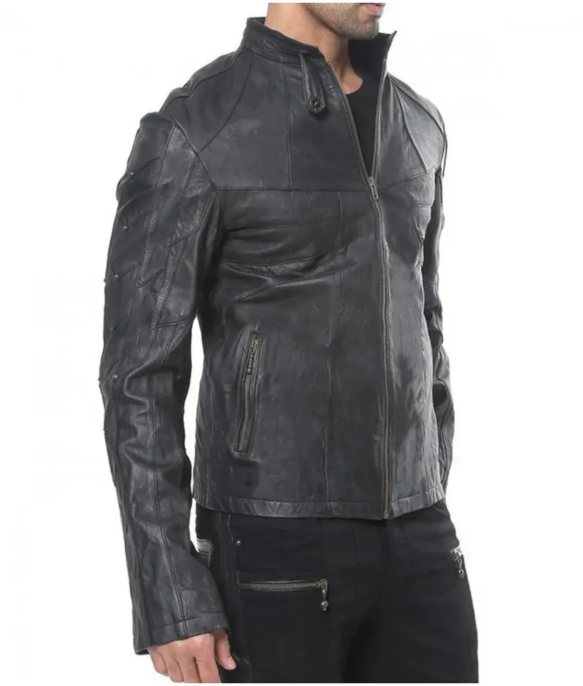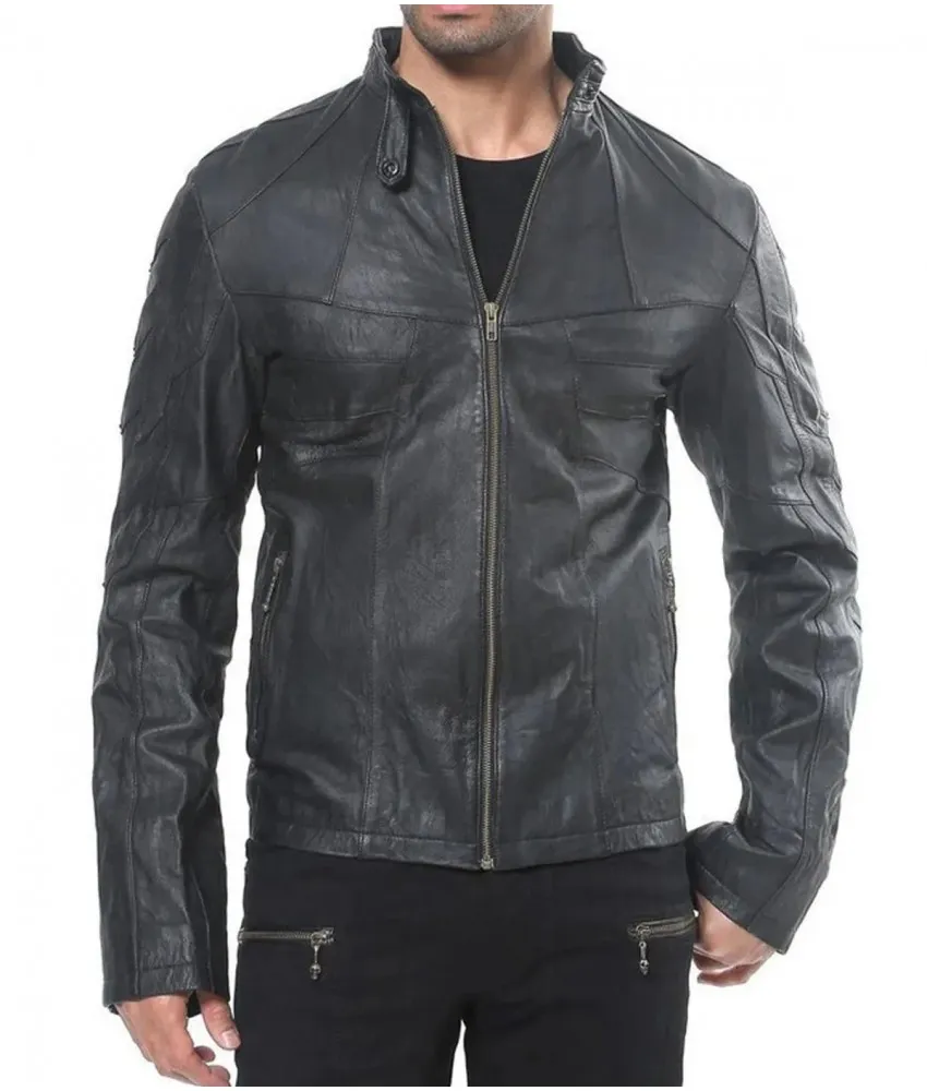 Men’s Designer Black Lambskin Leather Jacket with Front Pockets and Studs