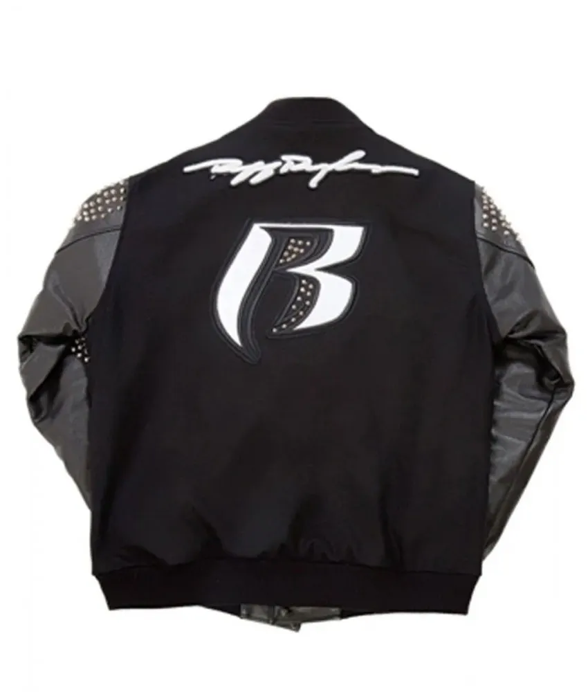 Men’s Ruff Ryders Studded Black Varsity Letterman Jacket