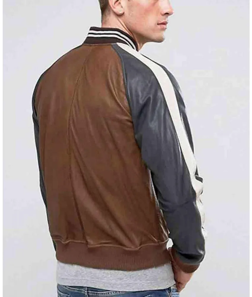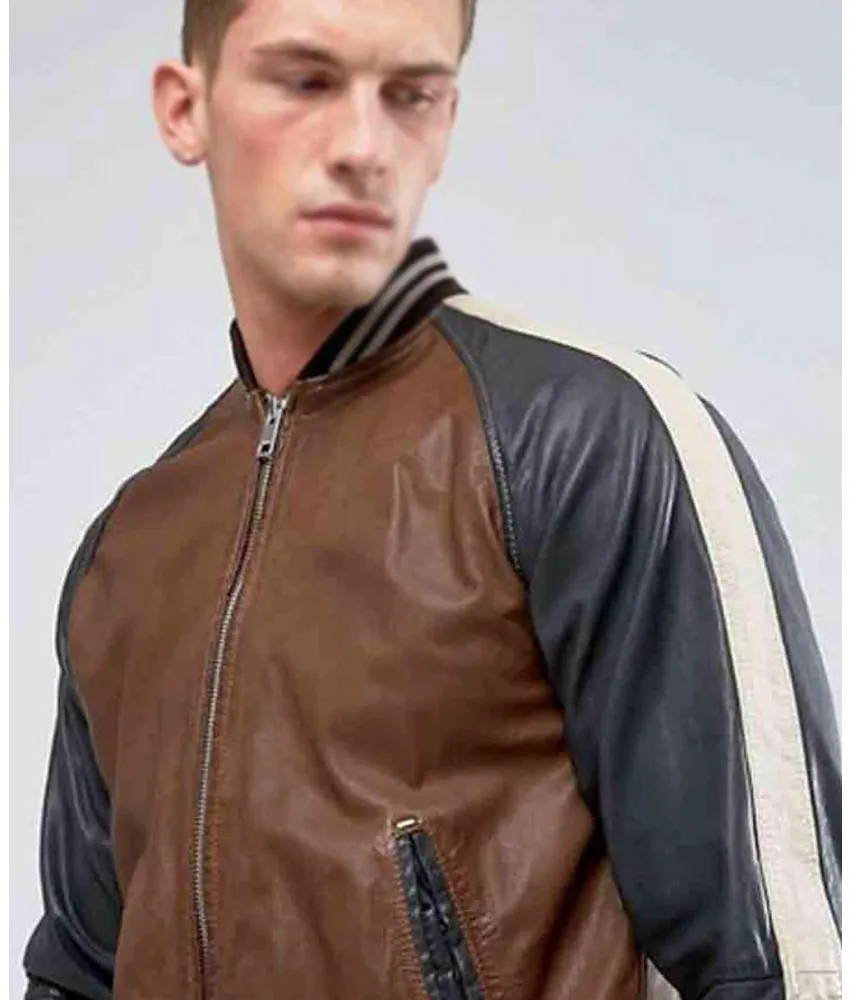 Men’s Truly Striped Bomber Real Leather Jacket