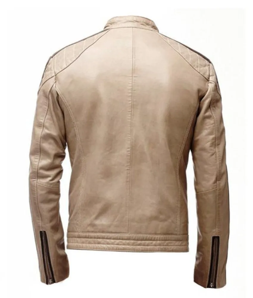 Mens Beige Leather Jacket