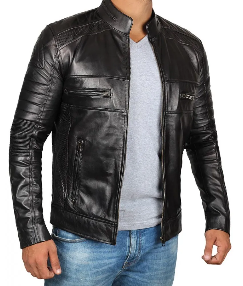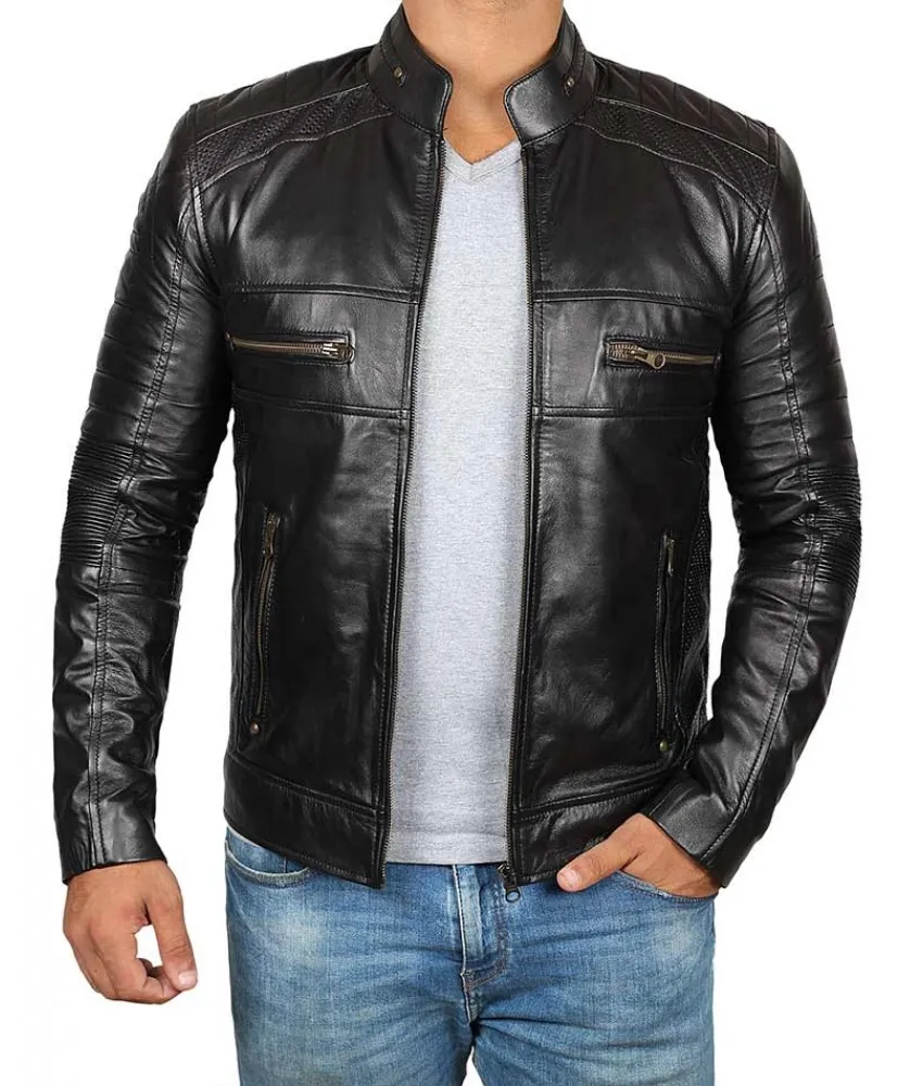 Add a charm to your everyday style with this black café racer motorcycle jacket that comes with attractive details. The outer is made of 100% real leather which gets better with age and lined with a breathable viscose fabric. Other than that, it features slight decorative padding on the shoulder, four zipper pockets and a zipper sleeves cuff. Overall the jacket is a complete package for a quick effortless style.