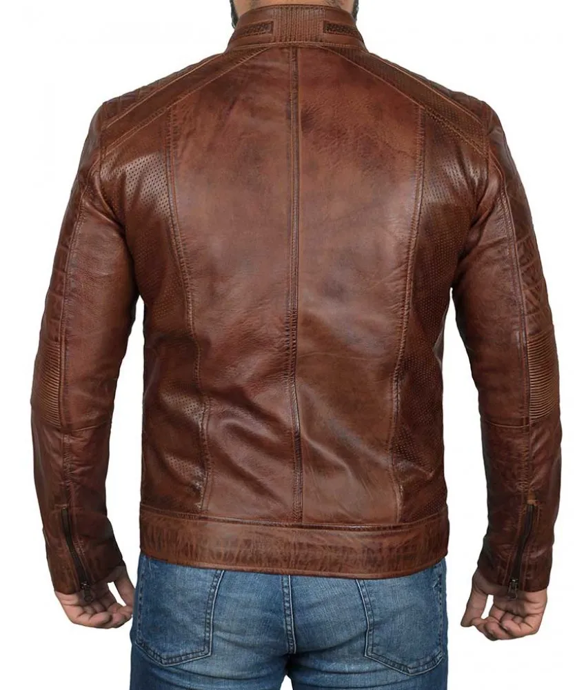 Mens Cognac Brown Motorcycle Distressed Leather Jacket
