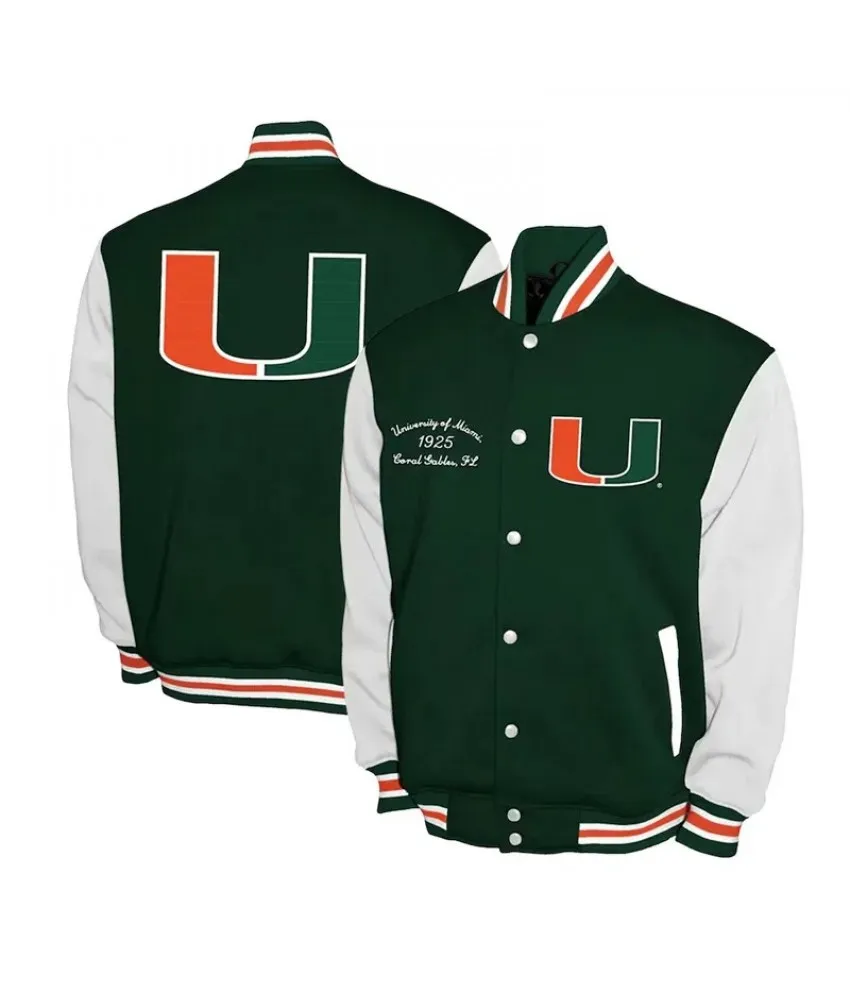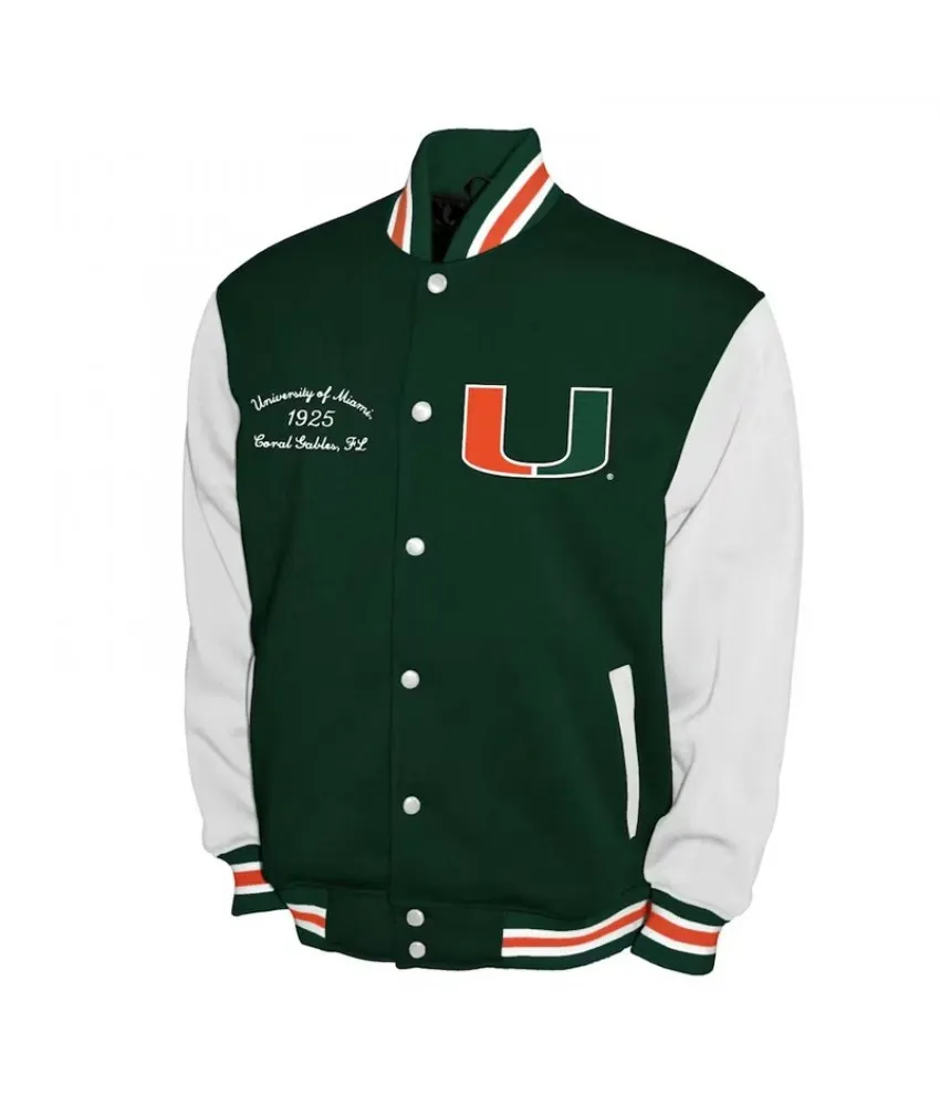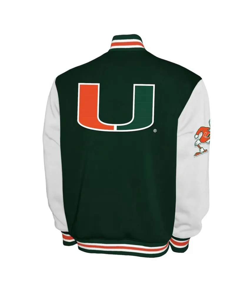 Miami Hurricanes Fleece Green and White Varsity Jacket