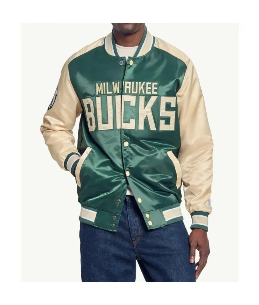 Milwaukee Bucks Green and Cream Varsity Satin Jacket