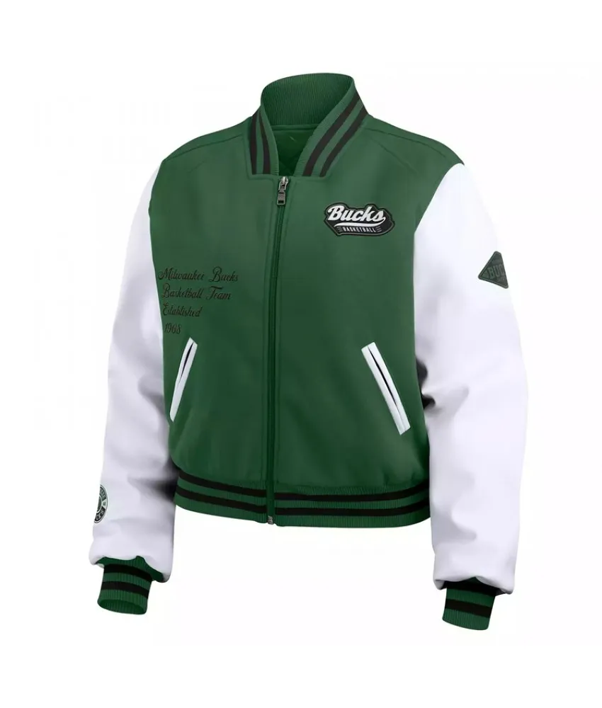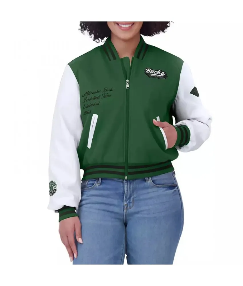 Milwaukee Bucks Green White Varsity Full-Zip Jacket