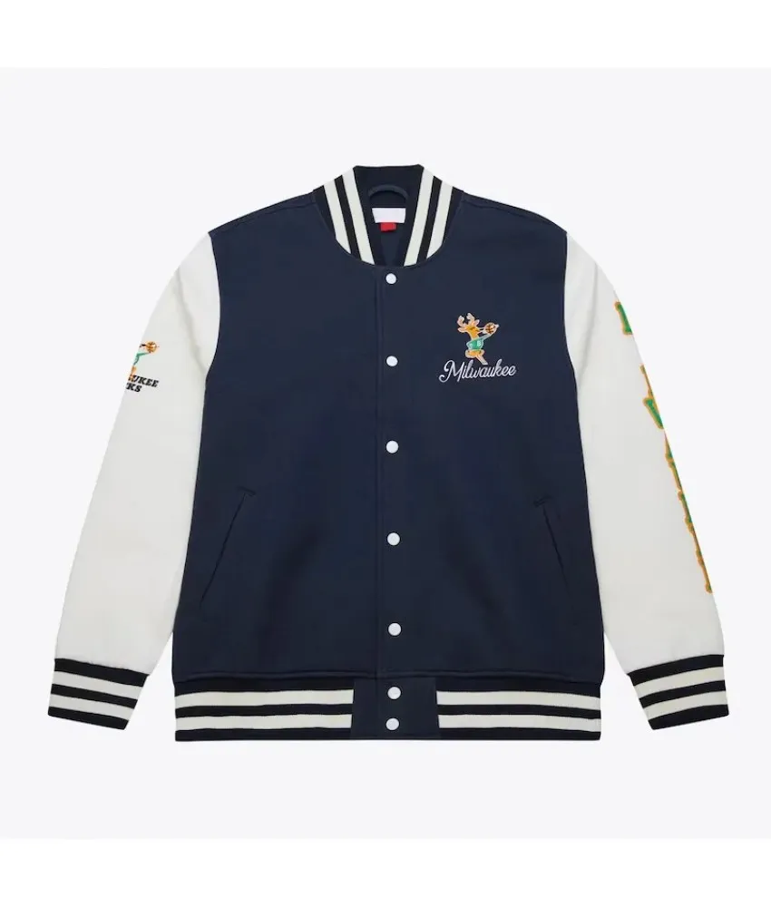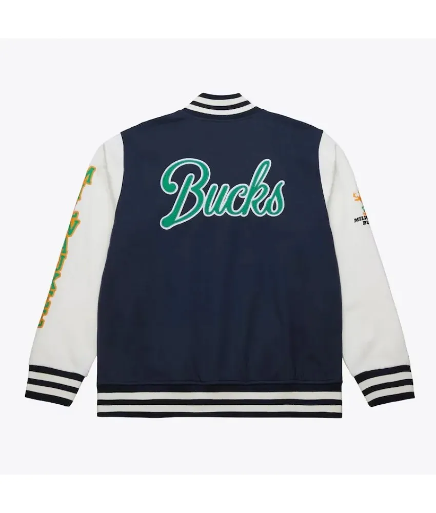 Milwaukee Bucks Navy and White Fleece Varsity Jacket
