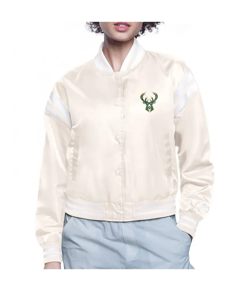 Milwaukee Bucks Printed Logo Varsity Satin Jacket