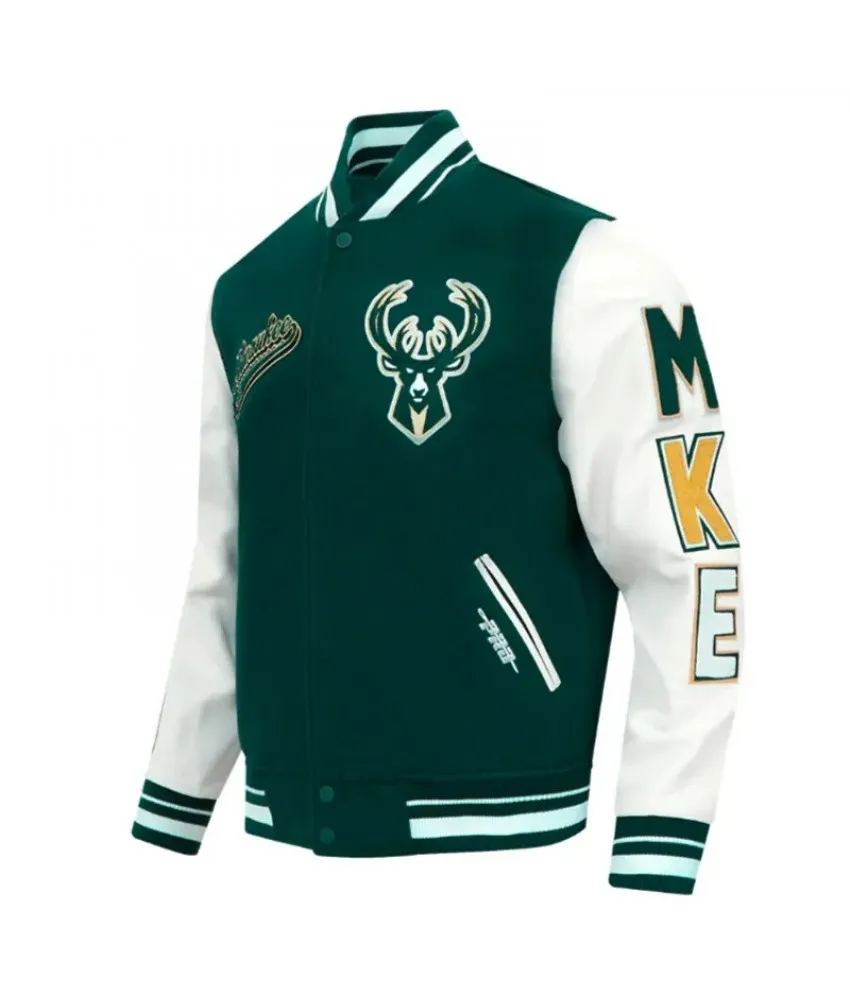 Milwaukee Bucks Script Tail Classic Rib Varsity Jacket