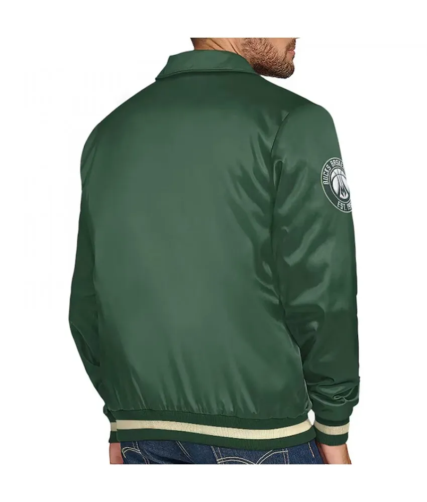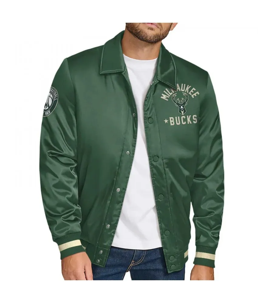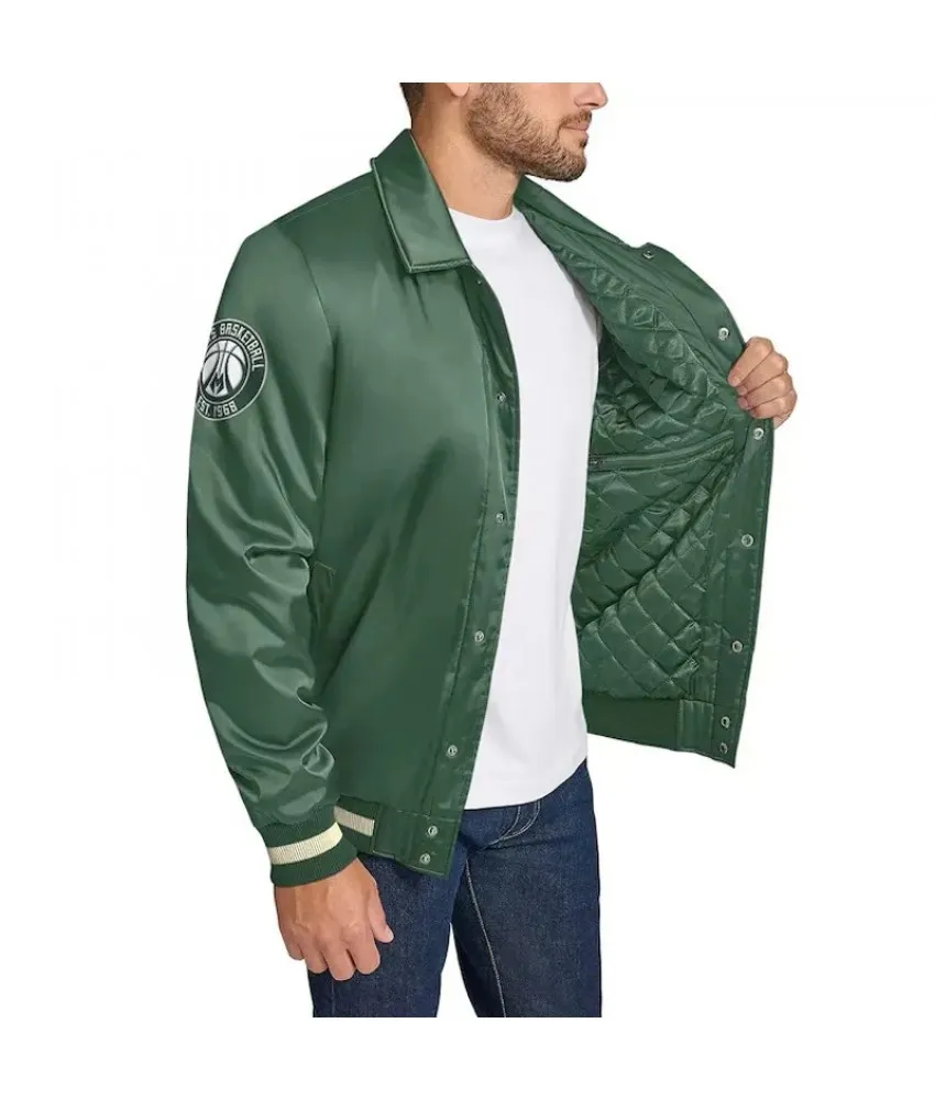 Milwaukee Bucks Stitch Applique Hunter Green Satin Jacket